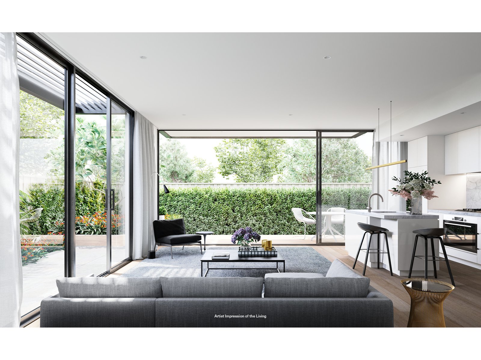 Merging pure, simple and minimalist design features, Profile pays homage to the opulent heritage homes dotted throughout the coveted domain it calls home – Malvern East. A series of twenty individually designed residences, each home has been considered to the highest degree, enhancing the lives that play out within. Profile’s exterior presents a sophisticated composition, appointed with generous glazing, brass-like metal and a glass balustrade that wraps around the periphery of the building. A minimalist grey palette pairs with white bands that work to accentuate the project’s horizontal ‘Profile’. A vertical texture has been employed to contrast with these horizontal bands, creating a solid distinction between two fundamental elements. Planters have also been incorporated in honour of Malvern East’s verdant landscape.