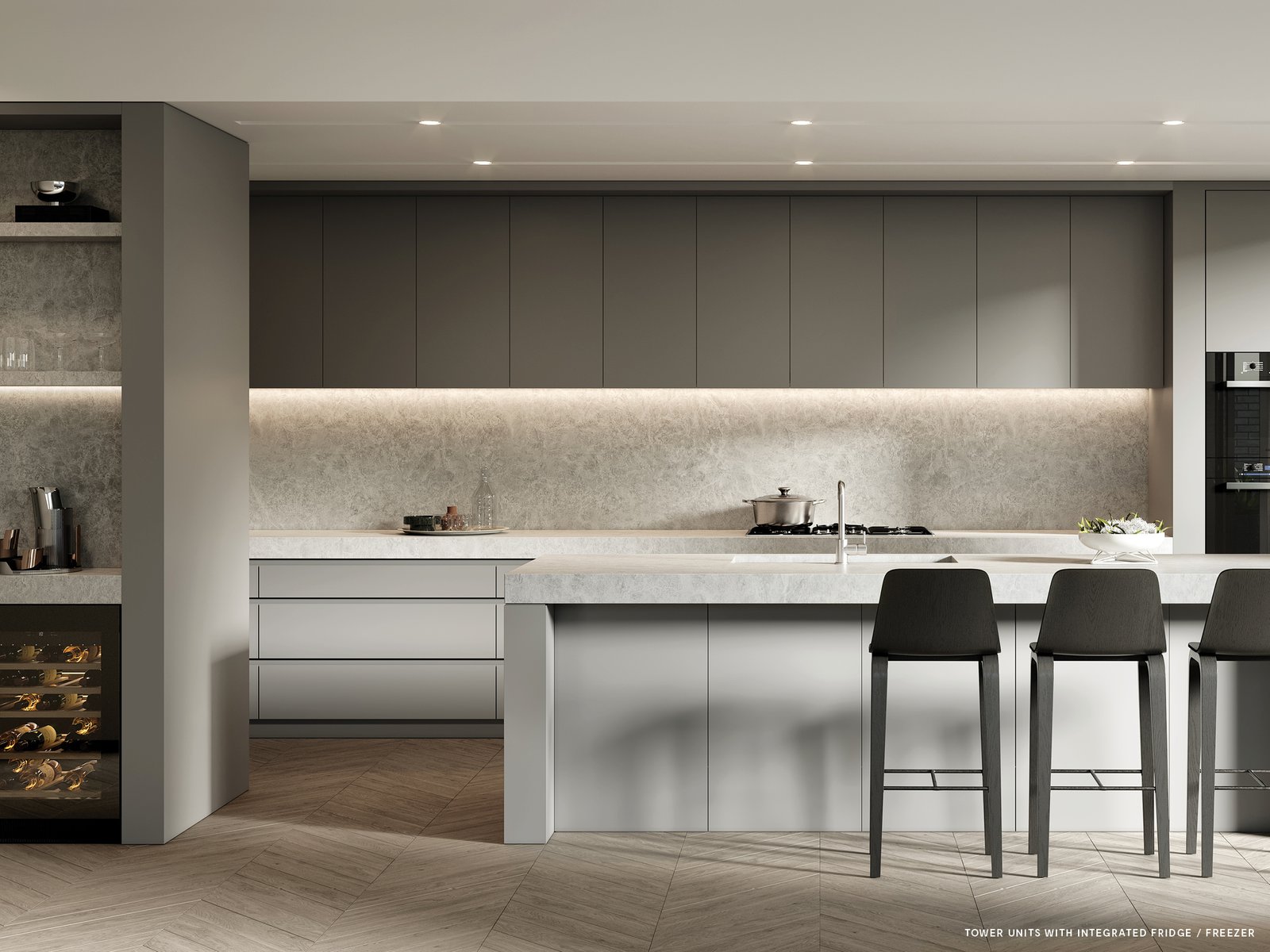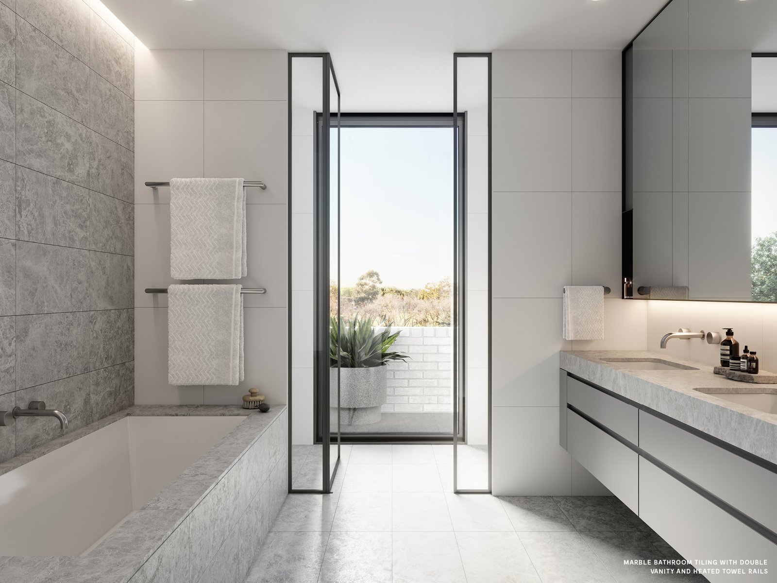 Central Park’s spacious, open-plan interiors unveil an aura of refined sophistication, also very much forged by the inspiration of nature. Upon entering these homes, it’s evident they’re innately generous, palpable in features like floor to ceiling windows and doors – enabling ample sunlight and uninterrupted views to the park – as well as high ceilings and expansive, gallery style walls. Imparting a distinct feeling of ‘home’, the residences favour a palette of neutral tones and natural textures, appointed raw stone surfaces, rich carpets and warm oak floors. The effortlessly beautiful kitchens of Central Park are gifted Miele appliances; some of many exemplary features in these homes, whilst the bathrooms and bedrooms exude understated luxury for infinite moments of rejuvenation.
