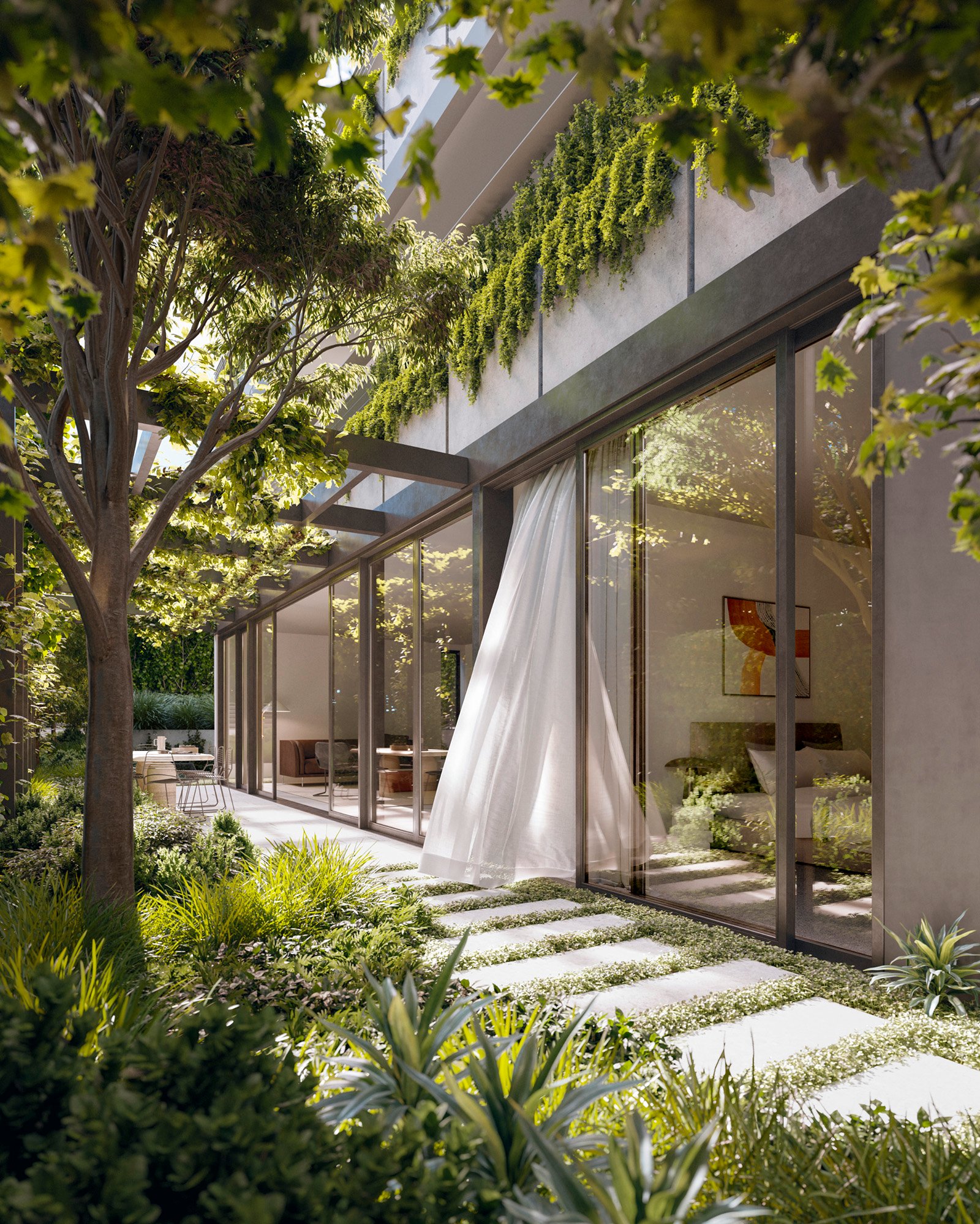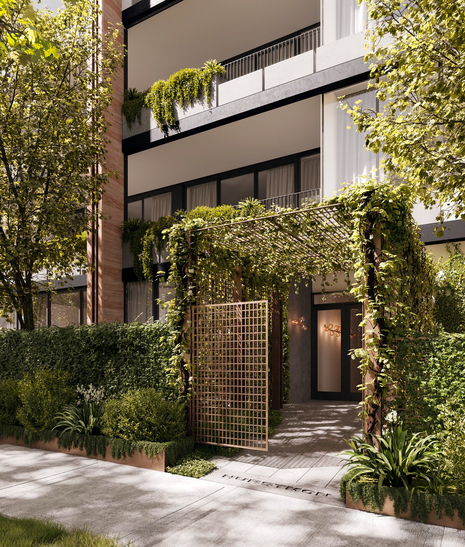 Hurstmon draws you home along an avenue of stately trees and lush, established gardens. The front of the property features carefully curated landscaping that mirrors the surrounding area. Ground floor residences feature landscaped courtyards that can extend a living space into an expansive entertaining area.