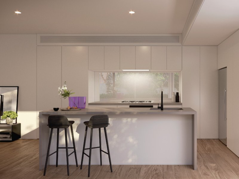 Each Viola town residence has been designed around liveability and human ergonomics. The final result is a light-filled, welcoming and comfortable, contemporary residence of fluid spaces and arresting contrasts. The selection of Meile appliances and chrome fittings in the kitchen brings an elegant and modern counterpoint to the traditional timber floors, stone bench tops and palette of sophisticated greys and whites. Viola truly is a place to call home.