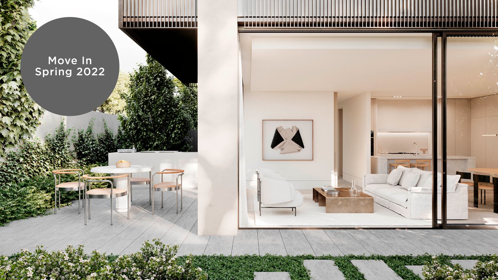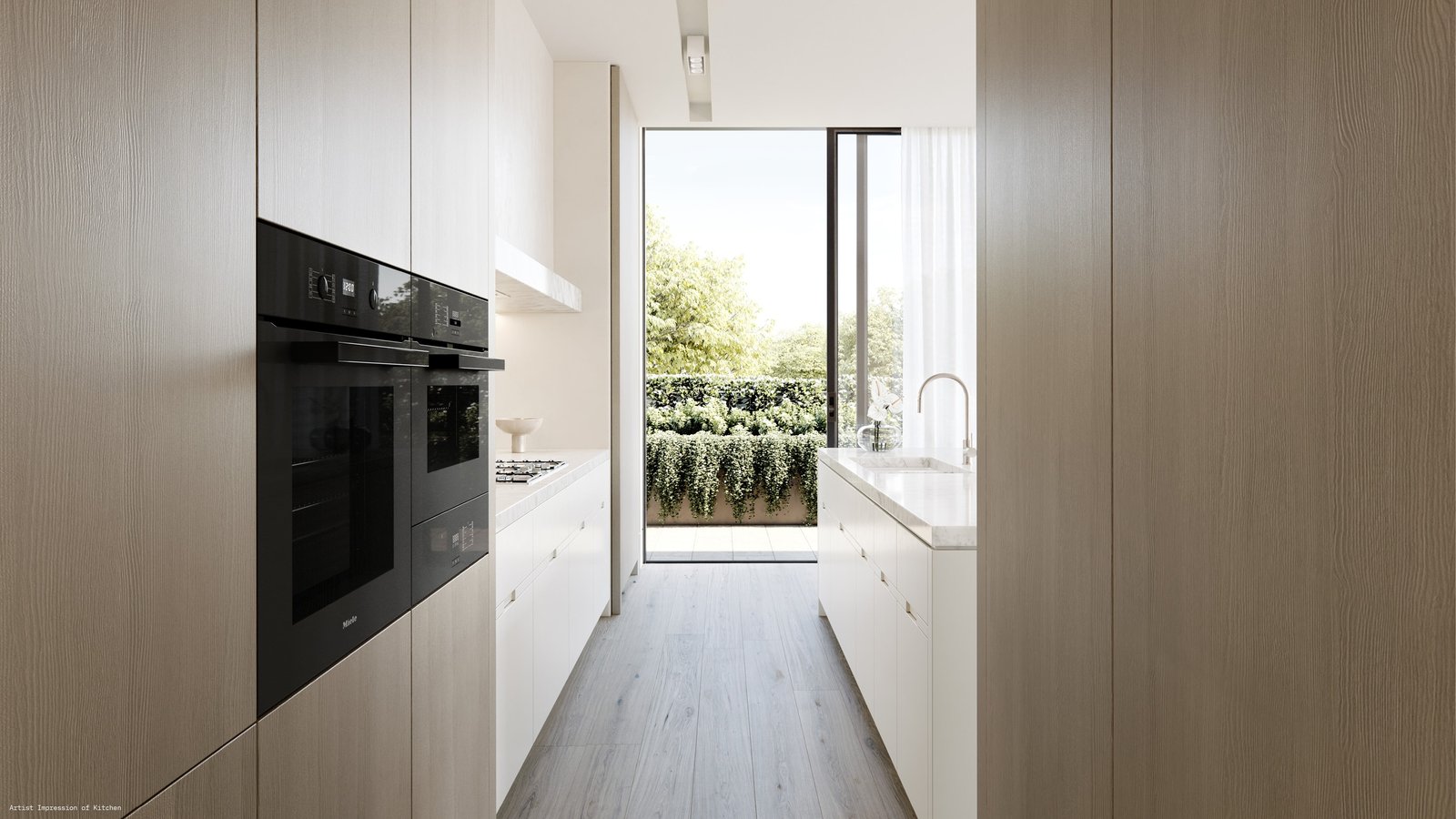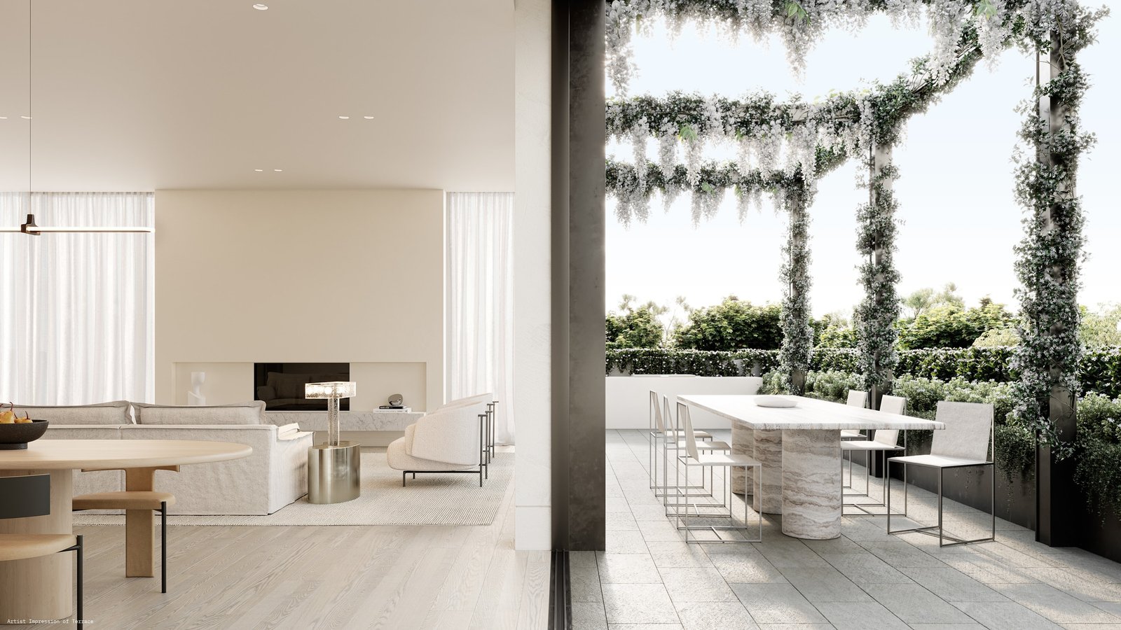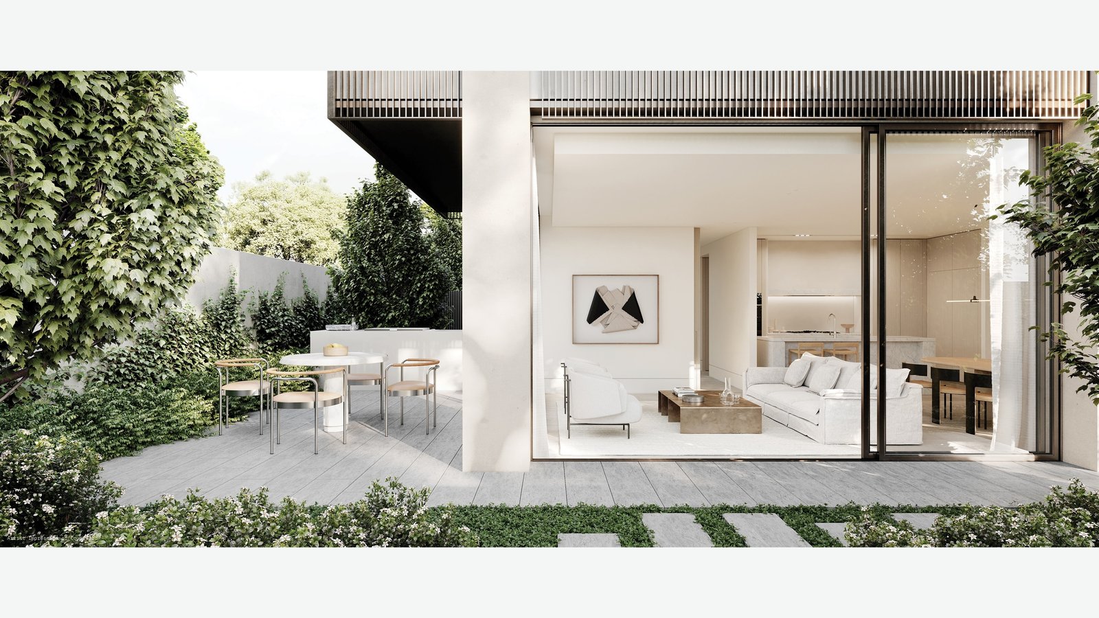 Imbuing each home with a wonderful sense of tranquillity, Lisa Ellis has curated sublime garden sanctuaries in the form of lush courtyards and landscaped terraces. Cascading vegetation softens the facade whilst providing an outlook of greenery within. Select terraces boast stunning pergolas for optimal shade whilst the ground floor apartments feature beautiful integrated trees.