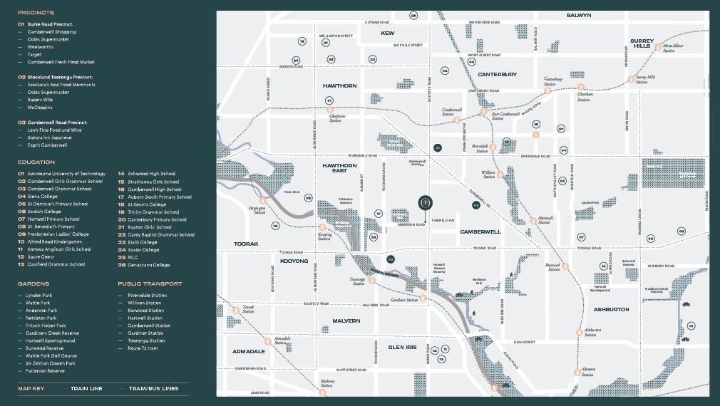 Camberwell and Hawthorn are well-established communities that offers a range of local amenities and easy connectivity. Settle in for a movie on the big screen in the opulent Art Deco surrounds of the Rivoli Cinemas, or stroll through the vintage wares on offer at the ever-popular Sunday Market. When traveling into the city, trains are close by at the beloved, Edwardian-style train station, with trams along Burke Road even closer to home.