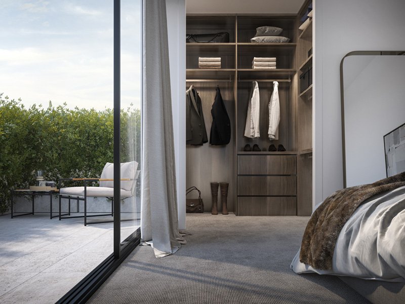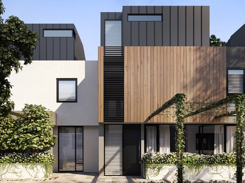 Each of the town homes to the southwest feature stunning rooftop terraces. These private oases among the trees are magnificent spaces to enjoy views across a green canopy to Harrison Reserve.
