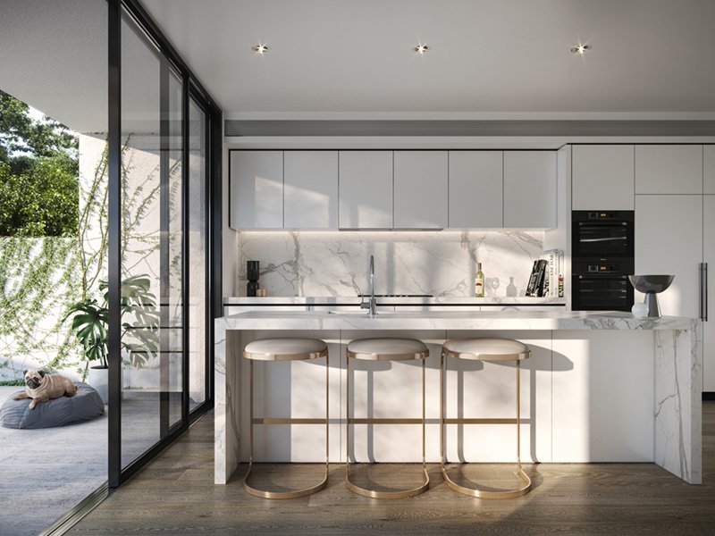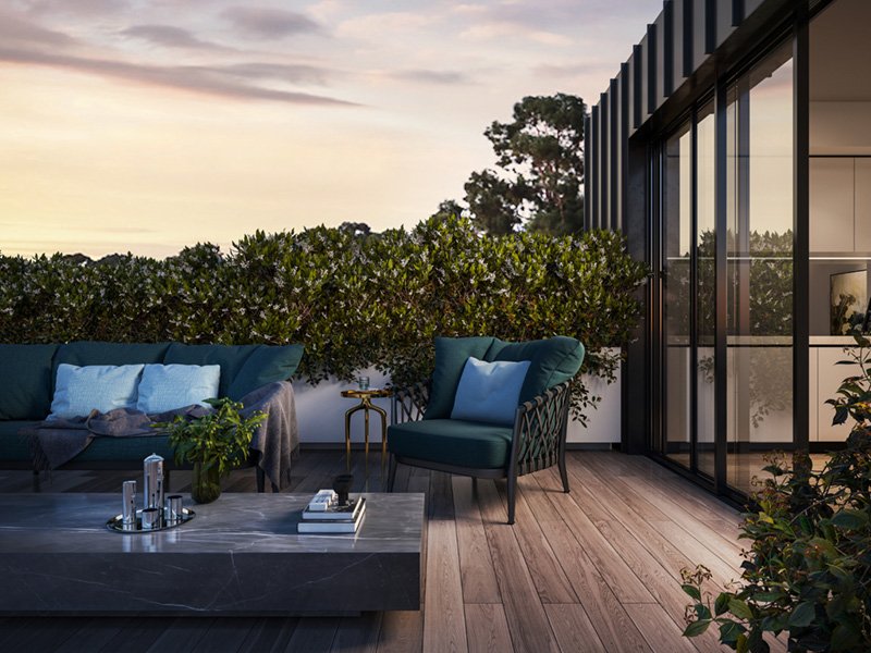 The design of Eastbridge evokes the nearby parklands, the leafy streets, and the warmth of the established Kew setting. A considered landscape by Jack Merlo features beautiful planters brimming with plants found in the local area as well as arbours and feature trees to mark the entrance of each home.