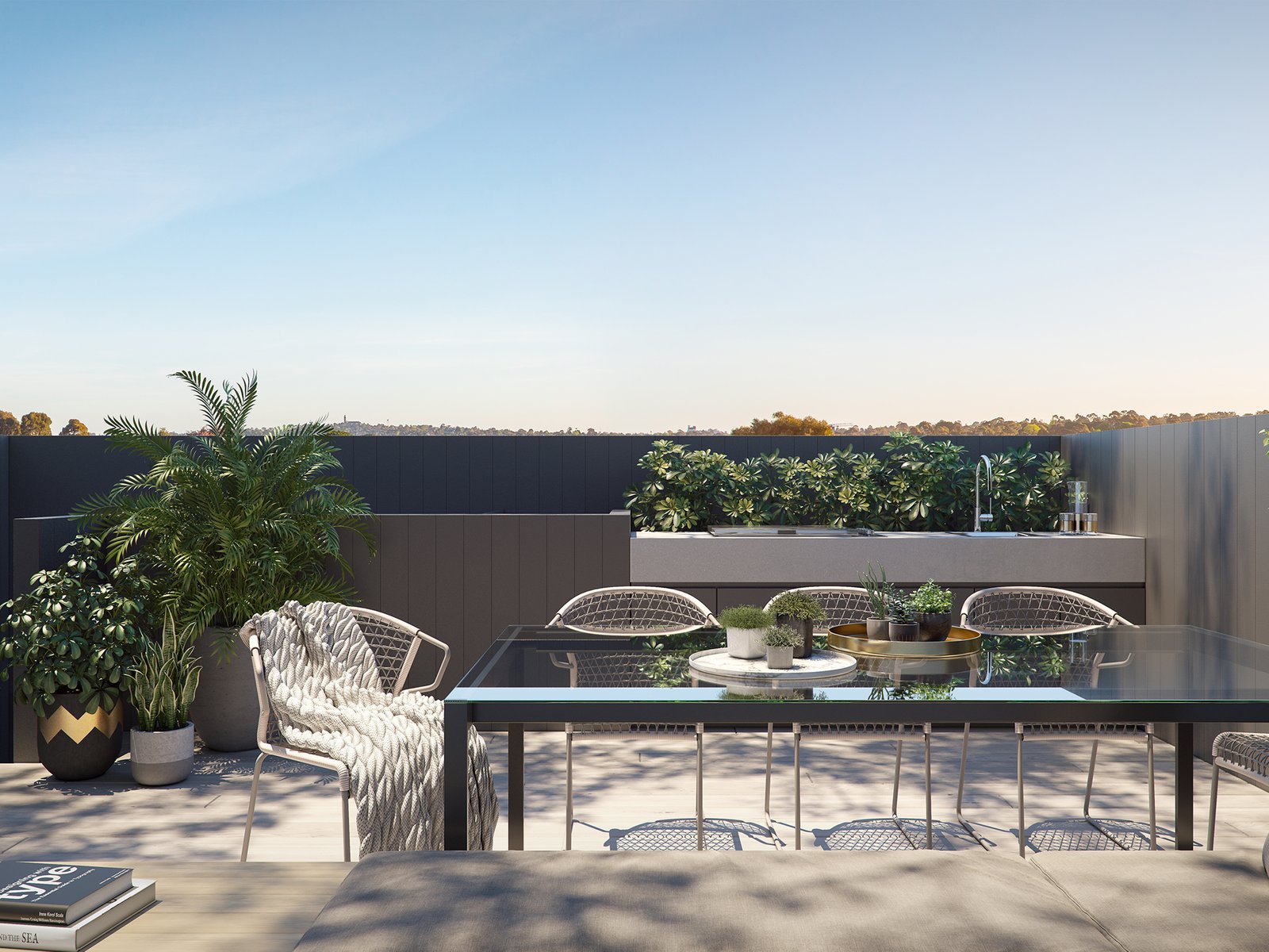 With architecturally designed spaces, Hotham & Carlisle offers the finest in interior and exterior design. Utilising the highest level of finishes, Neil Architecture brings to life high-end living in the heart of Balaclava. Unwind or entertain in complete luxury with living spaces that naturally flow together and create a sense of sophisticated harmony. Each private space is crafted for comfort and thoughtfully designed to allow natural light to seamlessly infuse through captivating oversized windows. Each bathroom is a sea of marble, with luxurious fixtures and fittings and a minimal design that creates an orderly and stylish space. Outdoor areas have been carefully designed to maximise direct sunlight opportunities throughout the day. Phillip Withers planters and gardens compliment each area to create an intimate outdoor sanctuary.