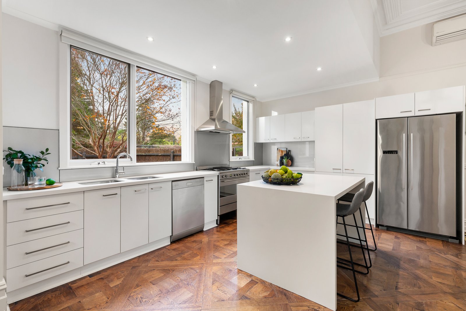 Exclusively tucked away in a secluded Dress Circle cul de sac, right on the cusp of Camberwell Junction, this gracefully renovated, solid brick, single level Queen Anne style residence presents four bedrooms and a home office, all in a remarkably low maintenance setting of supreme convenience. Grandly set on bluestone foundations with perfectly preserved tuck-pointing, a slate roof, leadlight windows and exquisite internal detail, the home also reveals a sympathetic contemporary renewal with a sundrenched alfresco spirit.