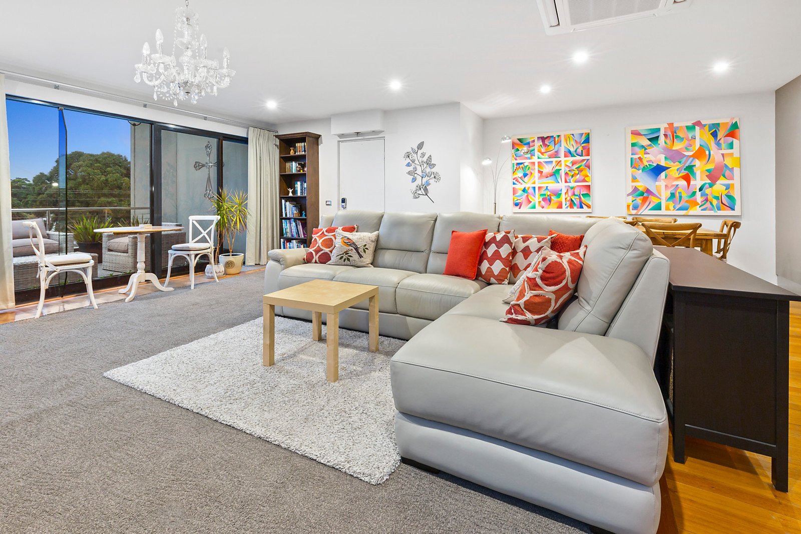 Drenched in natural light the north-facing main living/dining area connects seamlessly via multiple sliding doors to the vast terrace balcony, a spectacular setting for elegant entertaining against a backdrop of twinkling city lights and beautiful Beleura Hill.