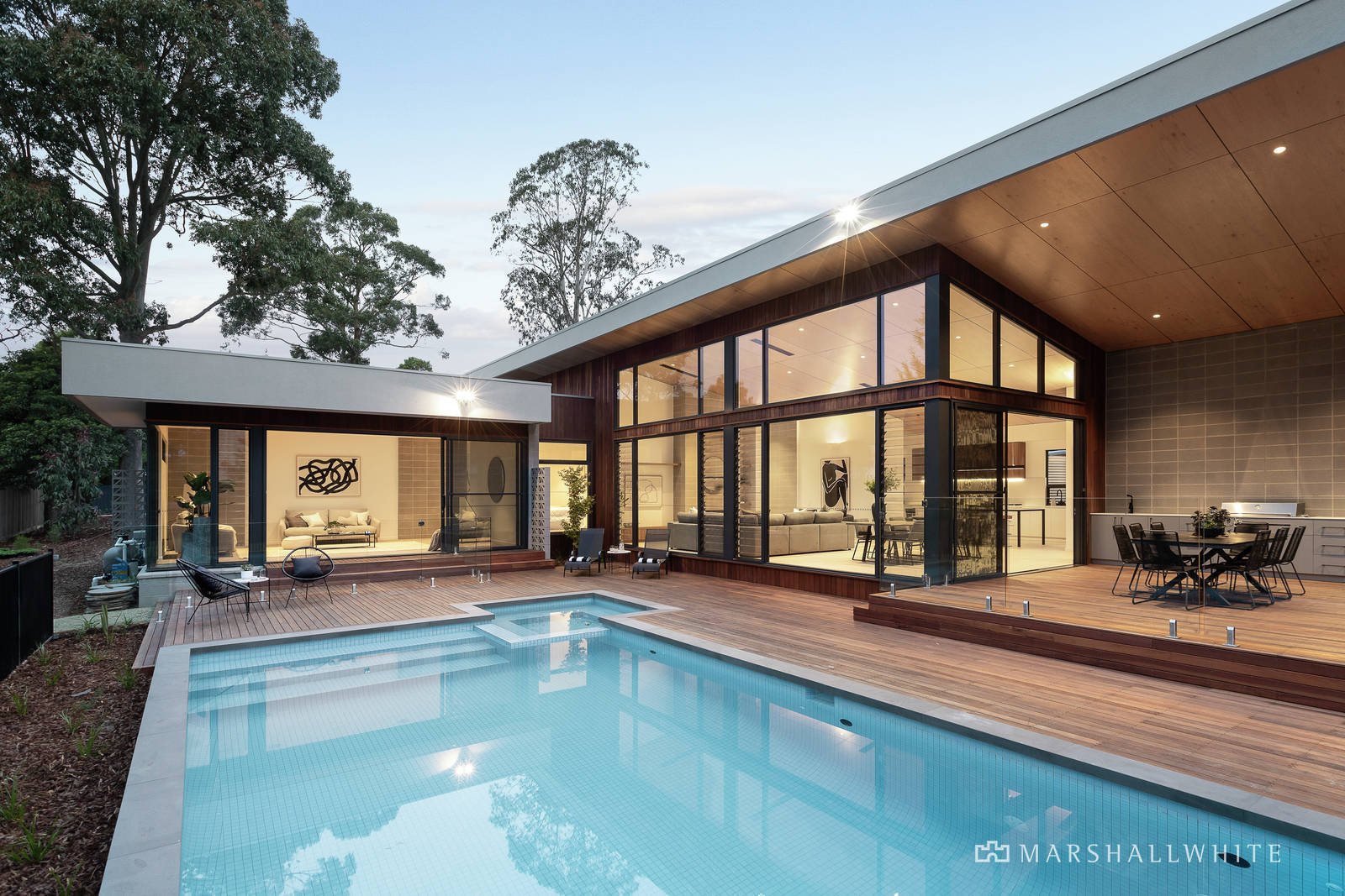 Stacking glass doors provide a seamless connection from the living area to the covered, hardwood timber alfresco deck, with built-in Beefeater barbecue. The fully tiled 5m x 10 metre pool has an integrated spa and is gas and solar heated. An expansive, lushly lawned and elegantly landscaped backyard completes the outdoor amenity.