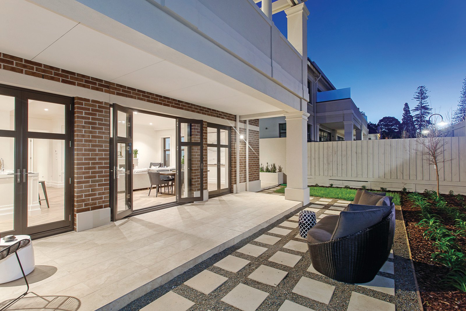 Beyond an elegant façade, light-filled open-plan living and dining areas combine effortlessly with a spacious courtyard framed by low-maintenance landscaped gardens to create an array of sophisticated and versatile entertaining options. A gourmet kitchen comprises Miele appliances, large walk-in pantry and breakfast bar. A stylish and generous main bedroom offers extensive built-in robes, front courtyard access and ensuite complete with double vanity, marble benchtop and bidet. An additional bedroom with built-in robes enjoys use of the main bathroom. Other premium features in this brand-new home include open fireplace, parquetry flooring, bespoke cabinetry, ample storage, video intercom, security system and secure garage for two cars.