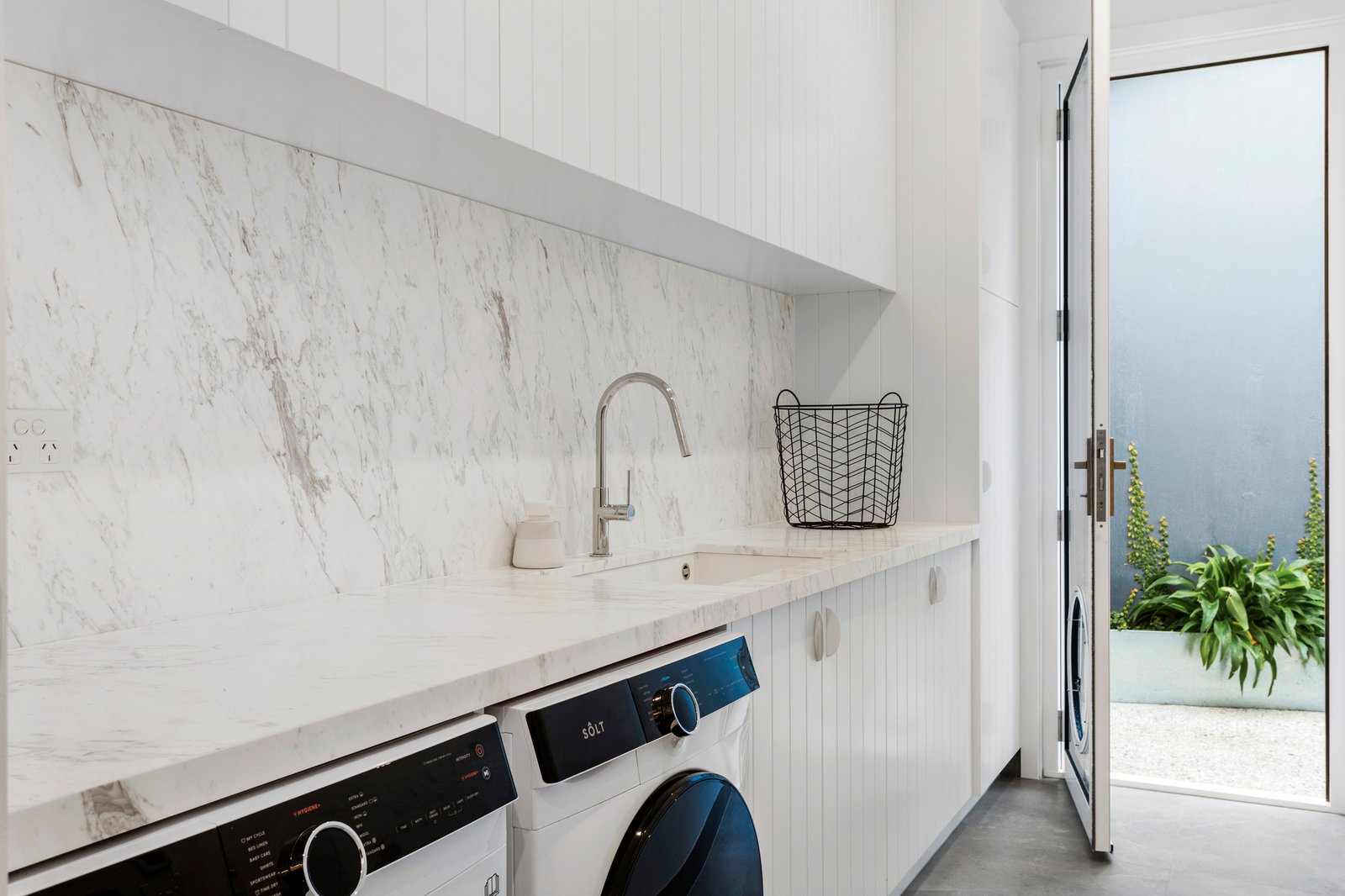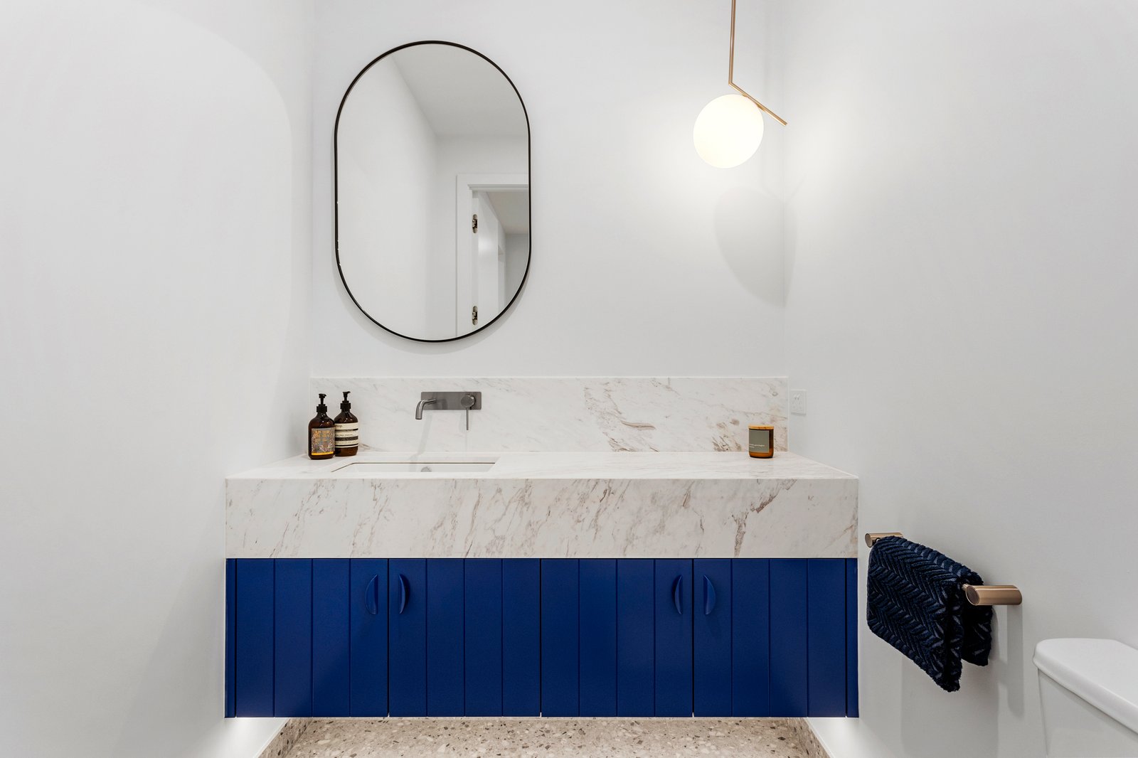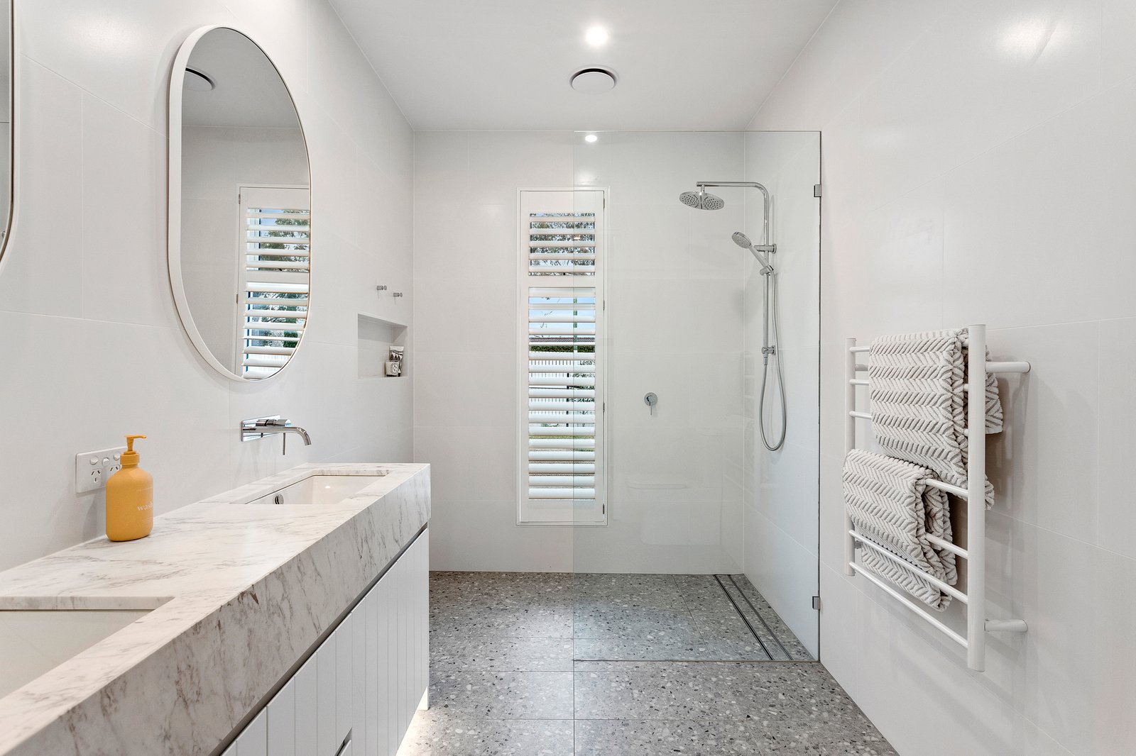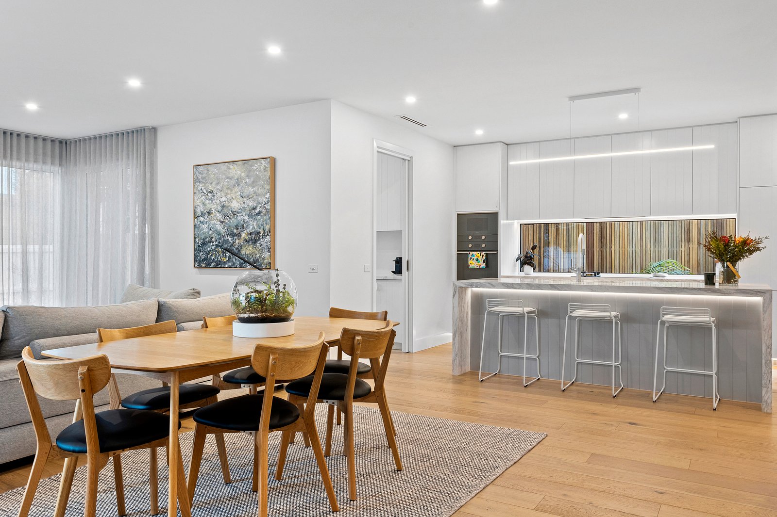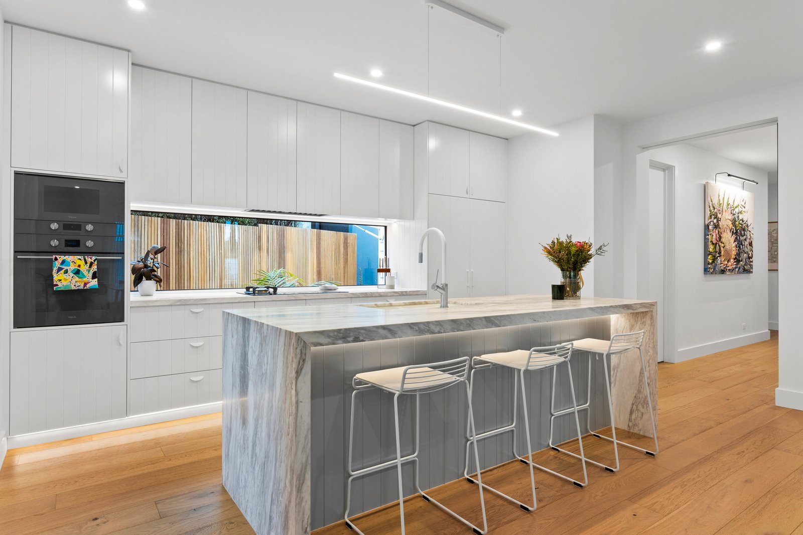 Zoned at the front of the home, the lavishly sized primary bedroom suite has built-in robes, plus a walk-through robe and a luxe ensuite with dual-head shower, twin vanities, under-floor heating and a heated towel rail. There are a further two spacious bedrooms, both with built-in robes and the blissful main bathroom has a deep freestanding bathtub, plus walk-in shower. An opulent powder room, marble laundry with external access and home-office space complete the layout.