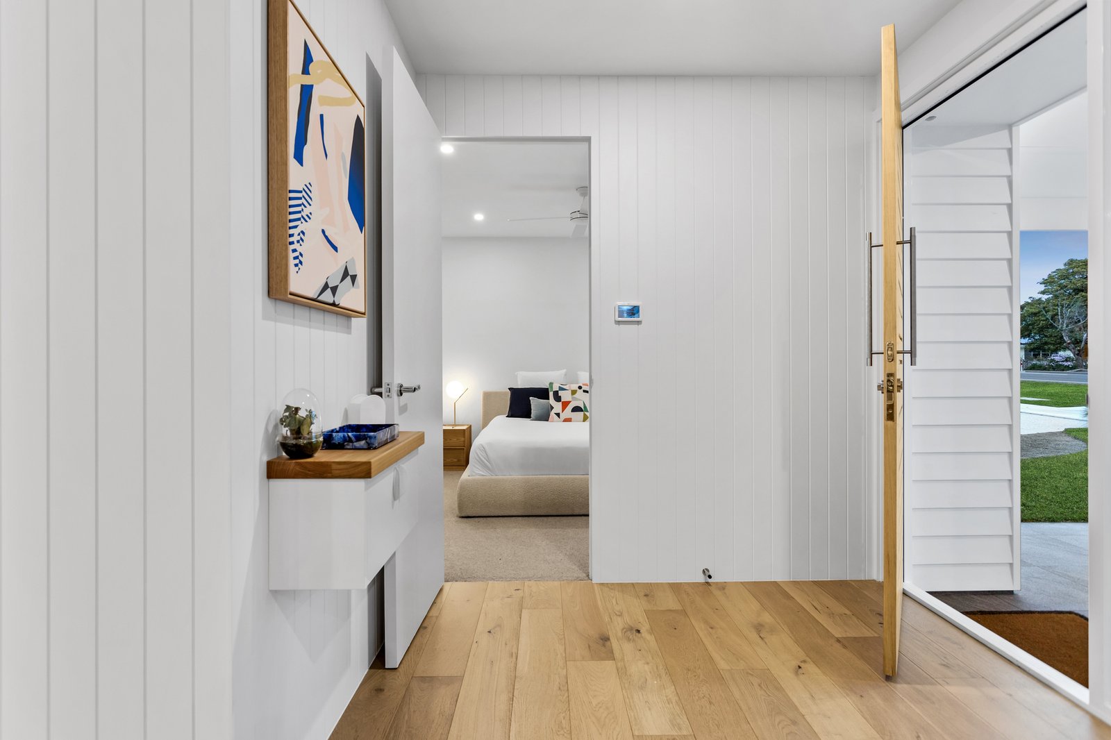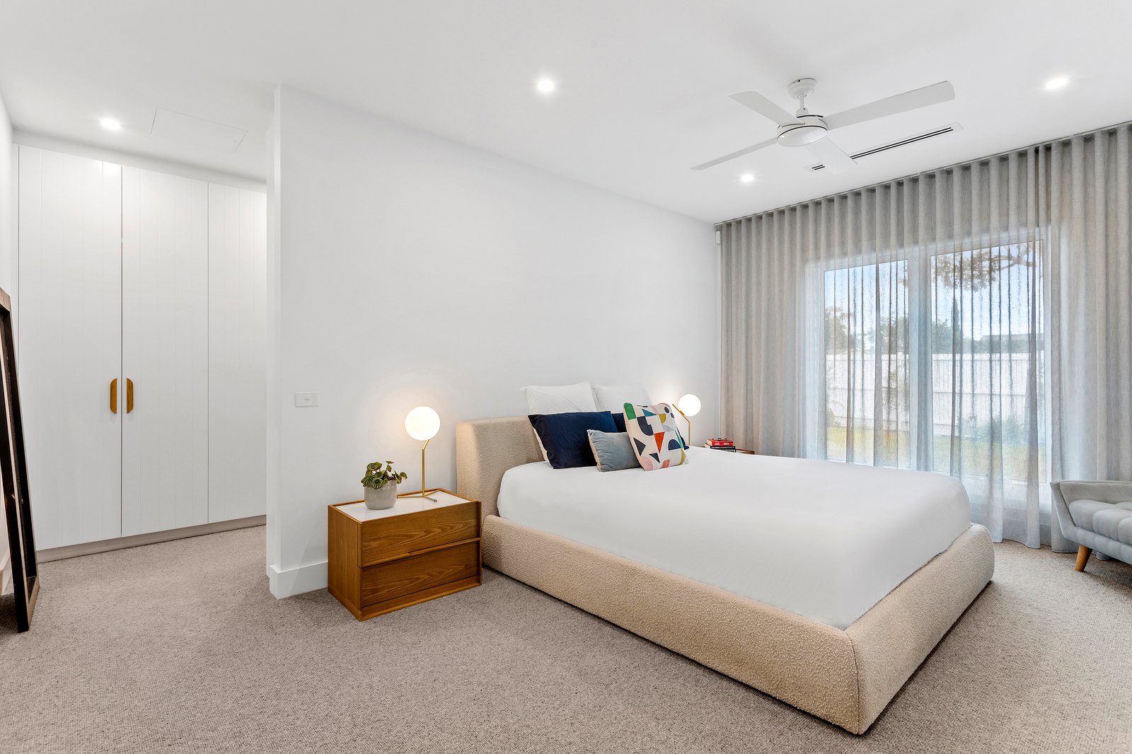 There is a remote-operated garage with dual internal and external access doors and off-street parking on the exposed aggregate driveway plus additional trailer/boat parking. Additional features include central reverse cycle heating/cooling, heated porcelain tiled flooring, 2-pack custom joinery, double-glazed windows, rainwater tank, automated irrigation and a garden shed.