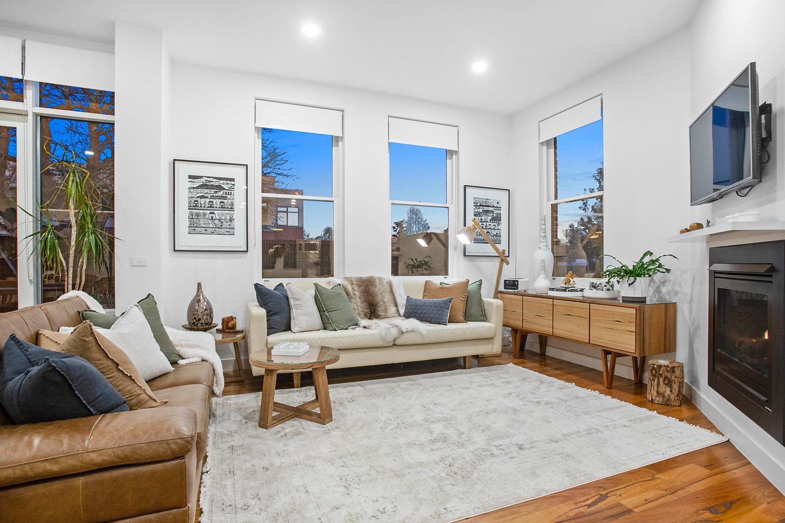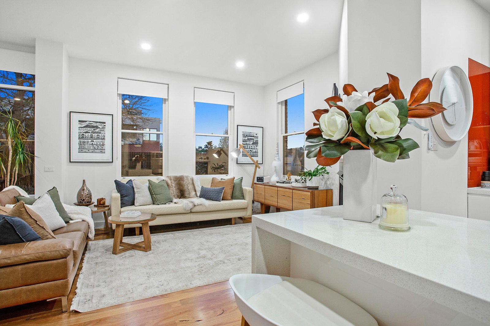 Quality design and exceptional attention to detail are the cornerstones of this immaculately presented home; designed to blend contemporary luxury with historic charm and complementing the Church hall architecture. Providing a beautiful, light-filled living environment with the interior featuring a downstairs main bedroom with a WIR and a pristine ensuite, laundry and powder room. Through to a spacious living and dining room alongside a sleek kitchen with island bench, CaesarStone bench-tops, Smeg and Miele appliances overlooking a sunny courtyard garden and a magnificent Flame tree within a tranquil garden setting. Whilst a further two bedrooms with BIRs and a family bathroom are located upstairs. Other features of this stunning home include an expansive communal lawn area enjoyed by the residents on a regular basis, luxurious appointments including fully-tiled bathrooms, ducted heating and cooling, gasLFP, ample internal storage and a basement storeroom, remote security car parking plus two visitors car spaces.