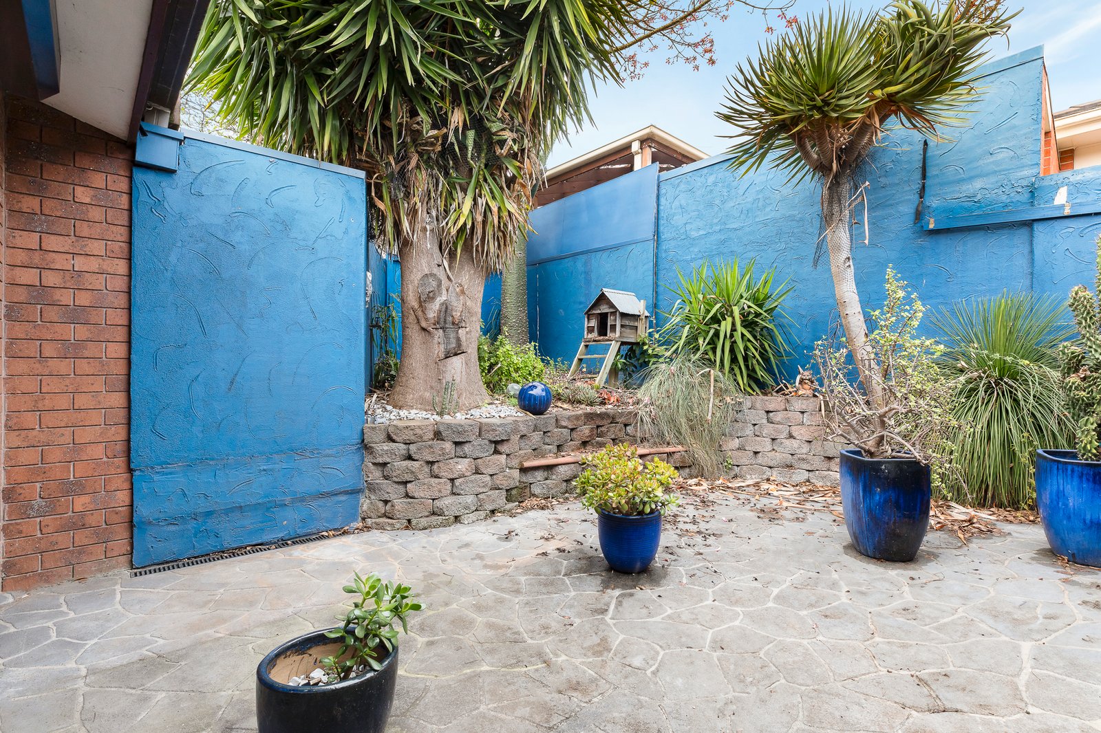 Filled with streams of northern light and set under striking vaulted ceilings with a broad northern exposure, the home is freshly carpeted while revealing a broad lounge room and a dining room, both conveniently semi-attached to the home’s central kitchen / meals. With minimal fuss, the kitchen also extends outdoors to a tranquil, paved and garden-surrounded living area that is exotically cast under palm trees, plus there is a double lock-up garage with additional driveway parking, as well as plenty of storage, an electric wall heater, split system heating and air conditioning.