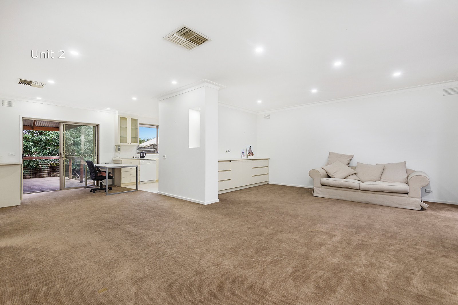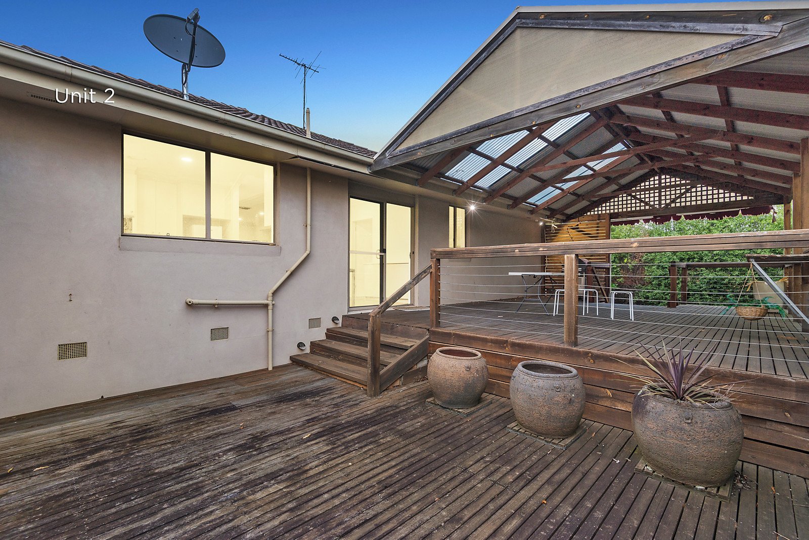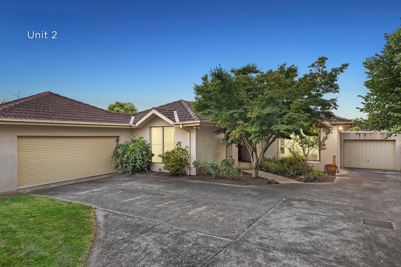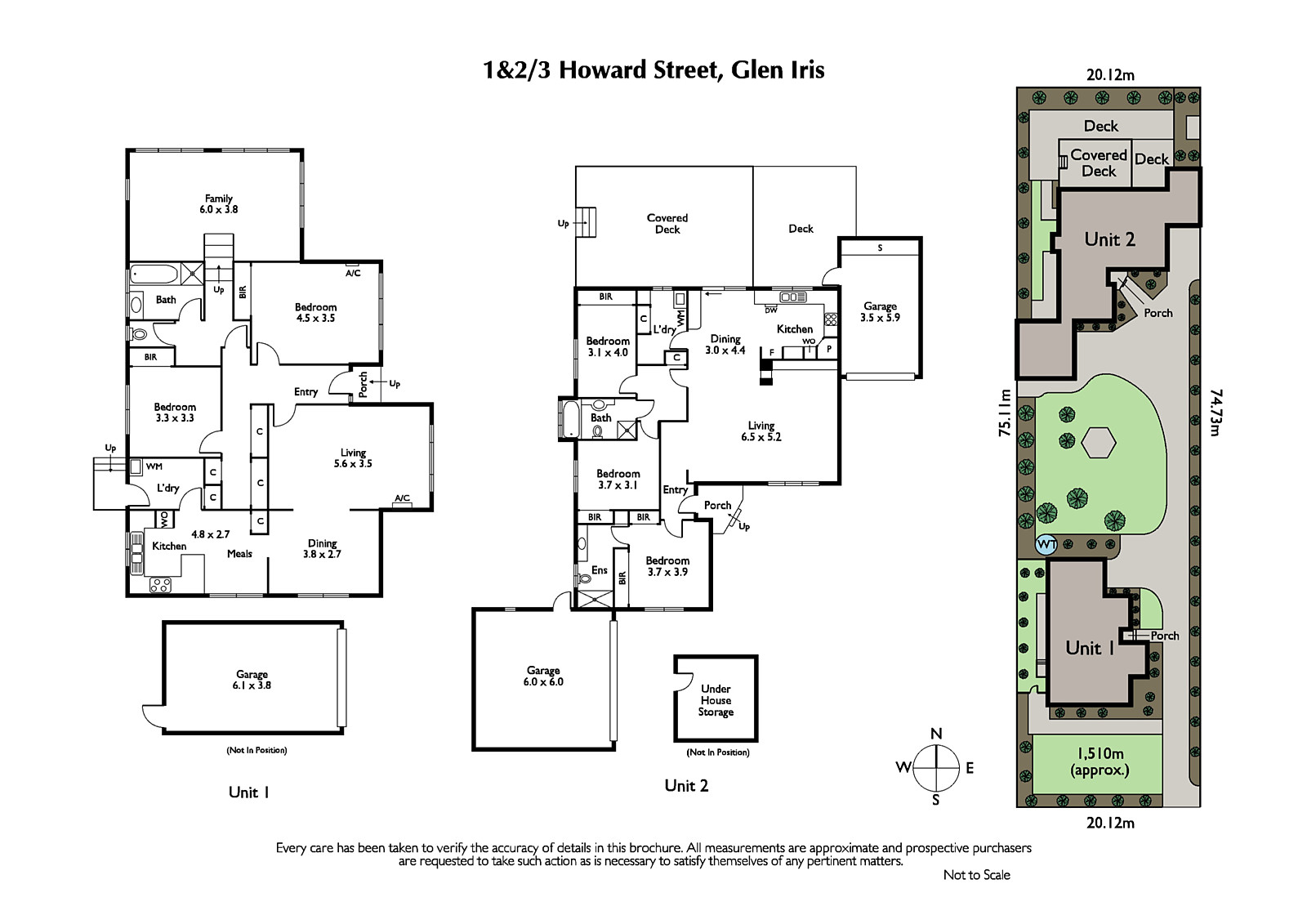 Unit 2: Positioned at the rear, impressive proportions define the expansive L-shaped living and dining room served by a bright modern kitchen. The main bedroom with an ensuite and built-in robe is accompanied by two additional bedrooms with robes and a bathroom. The living spaces open out to a large covered entertaining deck and the private north-facing garden. A large basement store-room is an ideal wine cellar.