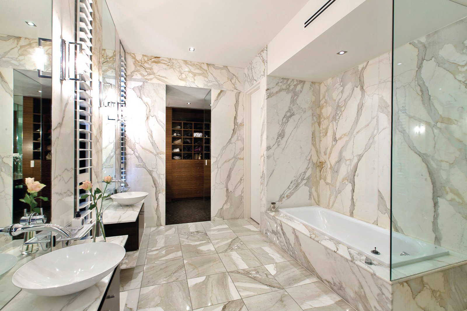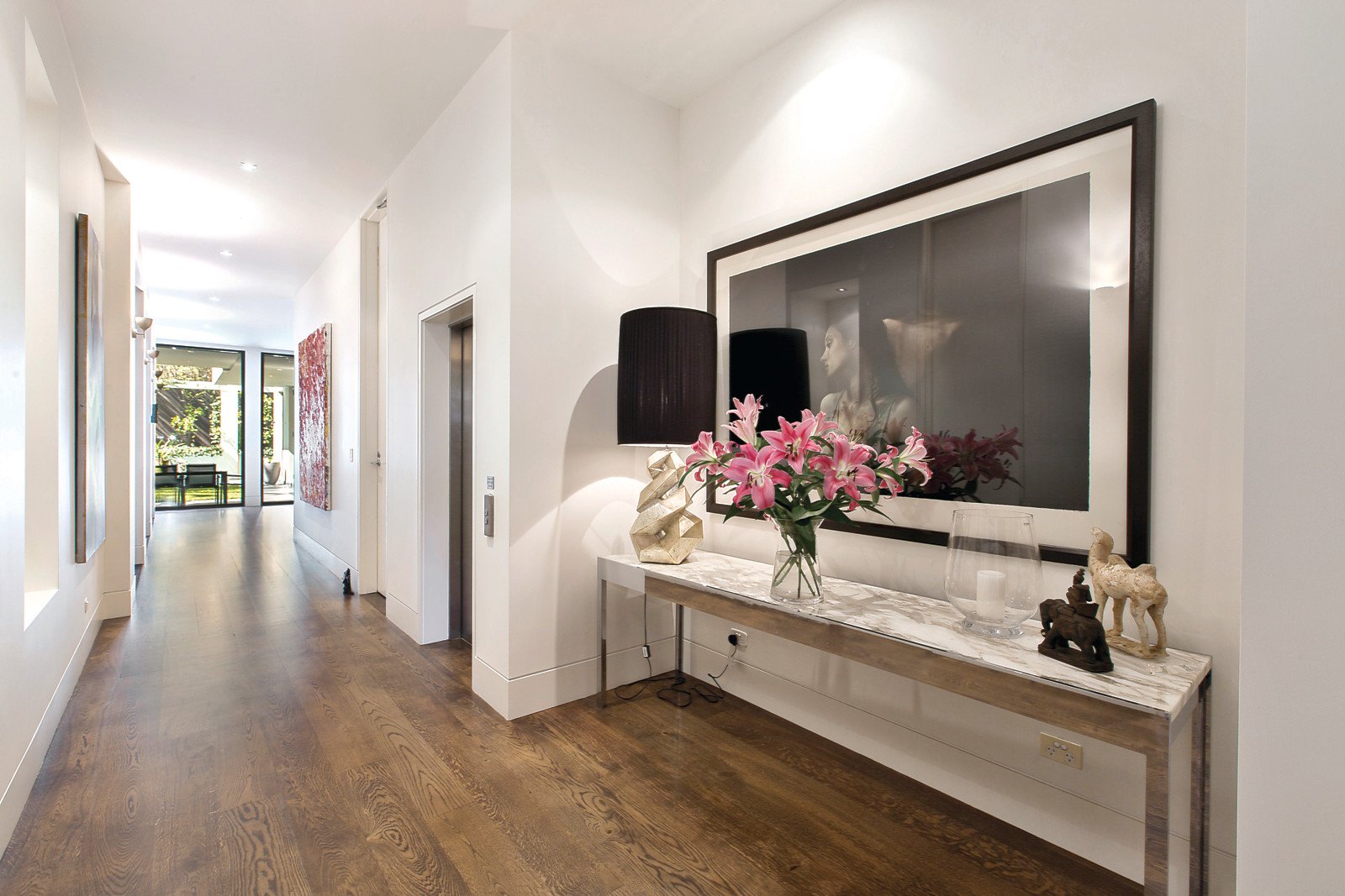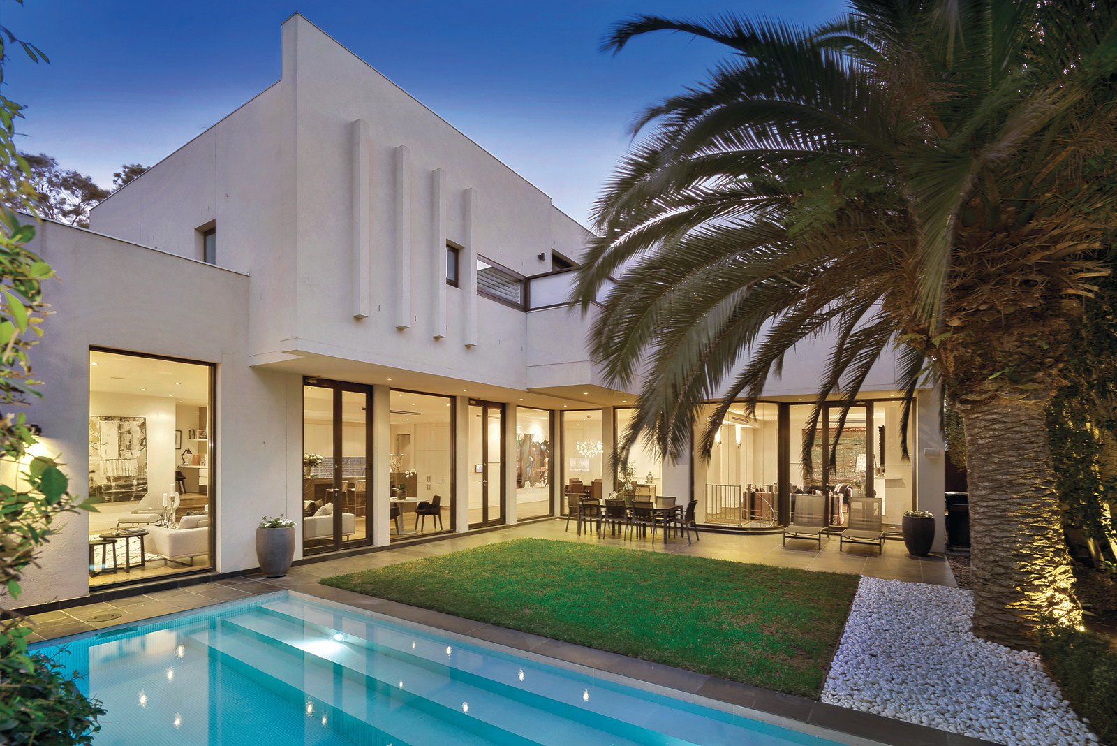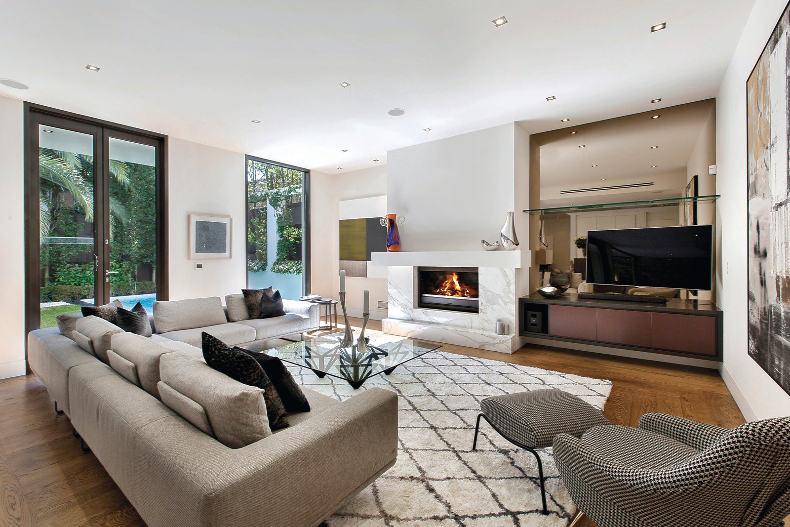 Superbly located within walking distance to Toorak Village, is this stylish and luxurious residence, with landscaped gardens in a boutique block of only two. Architecturally designed by Melbourne renowned architect, Ilario Cortese, it is of the highest standard featuring quality fixtures and fittings throughout, high ceilings and the most appealing layout. An imposing entry foyer opens to a stunning interior dominated by a modern neutral colour palette and walls free of any cornices-heightening that desired contemporary feel. Wide hallways, American oak floorboards and floor-to-ceiling windows that offer unrivalled views of the amazing al fresco area, flanked by trimmed hedges, completes the picture-perfect setting. The main hub of the home offers an open-floor plan and enjoys amazing views of the sparkling pool and outdoor entertaining area. A formal lounge and casual living area share similar views and both feature marble open gas fireplaces. The spacious new kitchen is comprehensively appointed with stainless-steel Gaggenau appliances, marble benchtops and a large walk-in pantry with integrated fridge, freezer and wine fridge. The main bedroom is at the entrance and features a luxurious and sophisticated marble en suite, with double vanity, bath and frameless glass shower. It connects to a dressing room and beautifully fitted walk-in wardrobe. A carpeted hallway leads to the further three large bedrooms, each with marble en suites. One bedroom is conveniently located near the entrance and can be easily set up as a home office, as it offers a separate access from the grand foyer. A spiral staircase leads downstairs to an equipped home theatre.