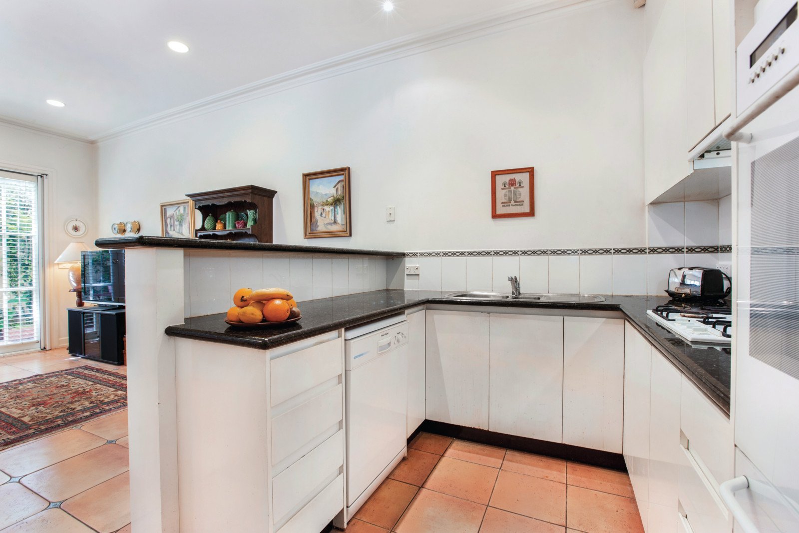 Natural light streams through the beautifully spacious sitting room and dining area opening to the private sun-drenched landscaped courtyard. The inviting living space and superb St George kitchen with granite benches opens to a leafy side northern courtyard. Upstairs, two bright double bedrooms both include robes and smart en-suites. Additional features include slab heating, RC/air-conditioners, alarm, security intercom, powder-room, laundry, ducted vacuum system, auto gates and internally accessed garage.