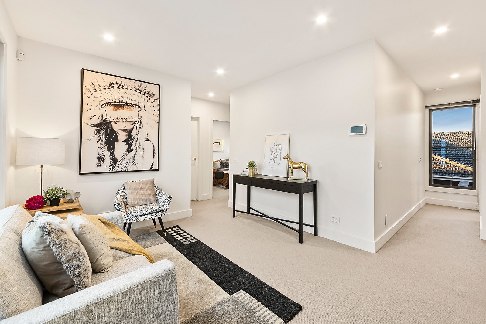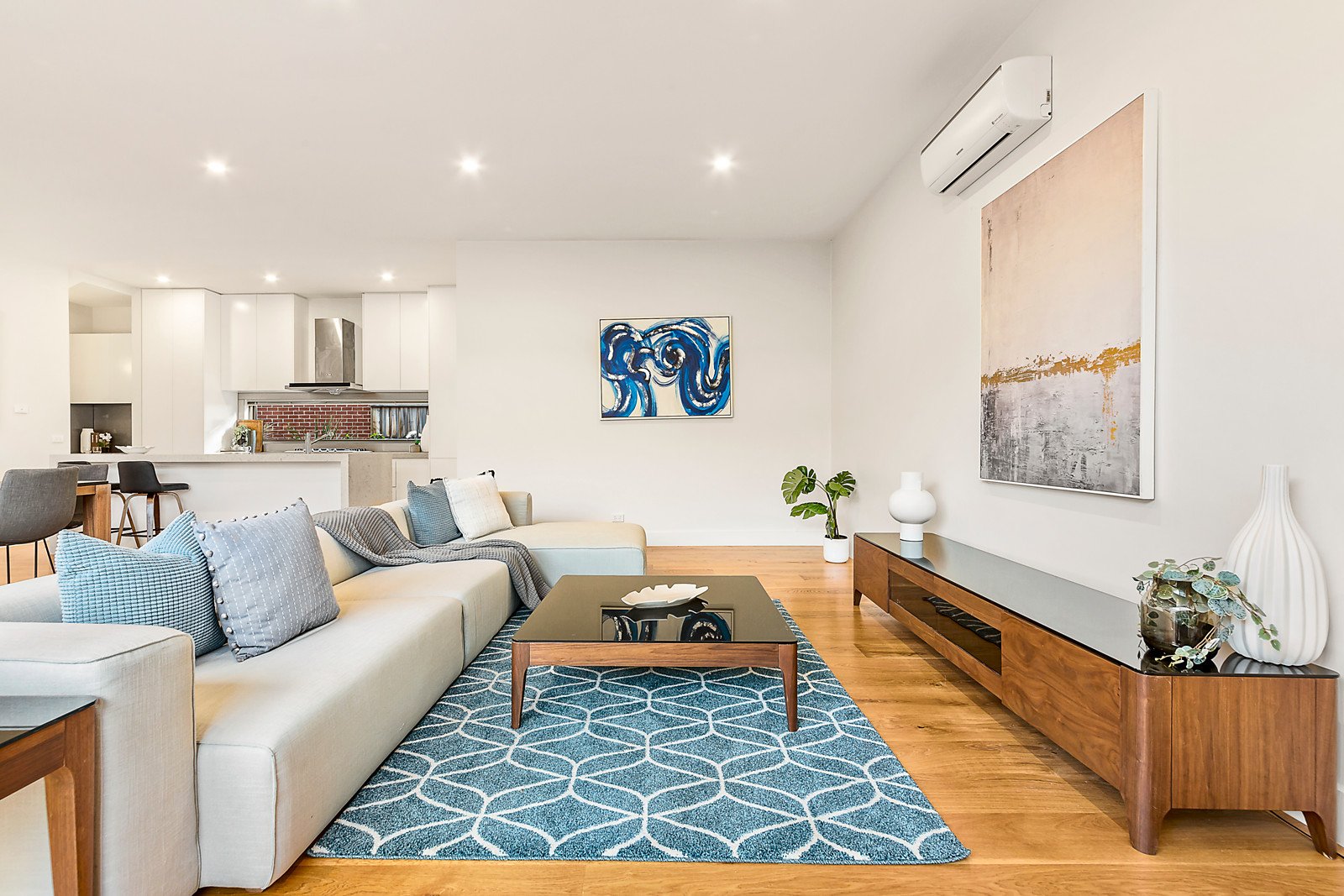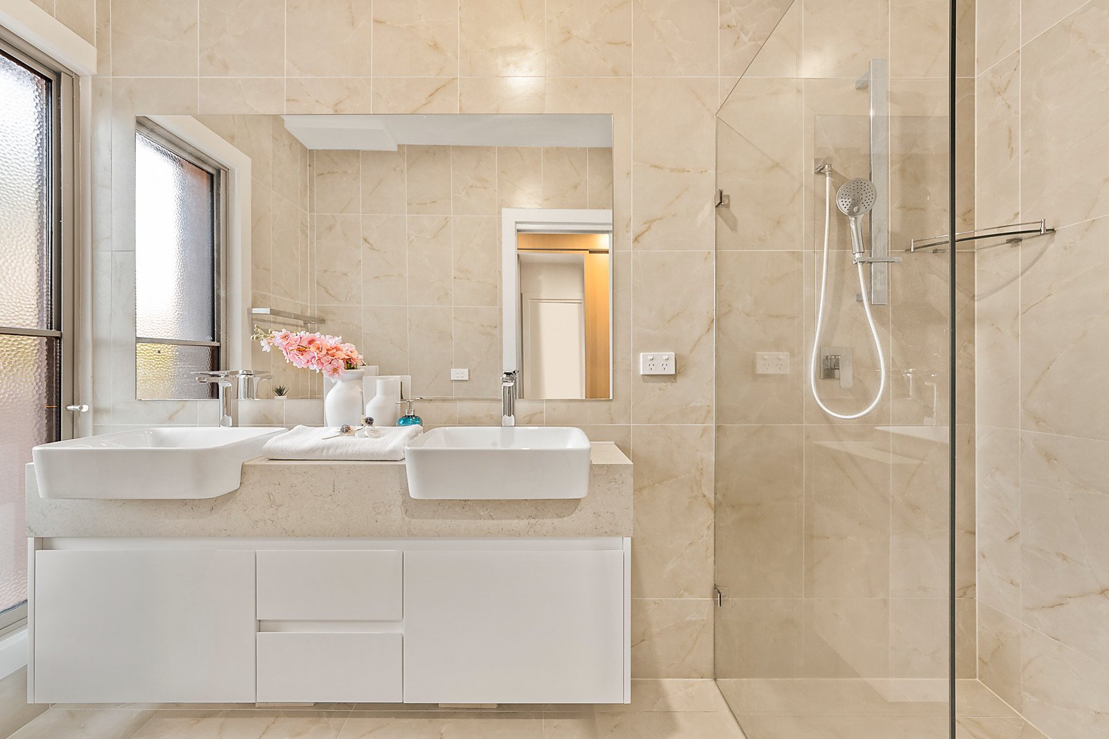 Wide oak floors flow through the welcoming entrance hall to an expansive open plan living and dining room bathed in natural light and opening to a private north-facing courtyard. The sleek gourmet kitchen is appointed with Miele appliances and stone benches. A downstairs main bedroom with stylish en suite and walk in robe is matched upstairs by an alternate main bedroom with chic en suite, walk in robe and balcony. There are also two additional bedrooms with built in robes, a home office or 5th bedroom, family bathroom and a retreat.