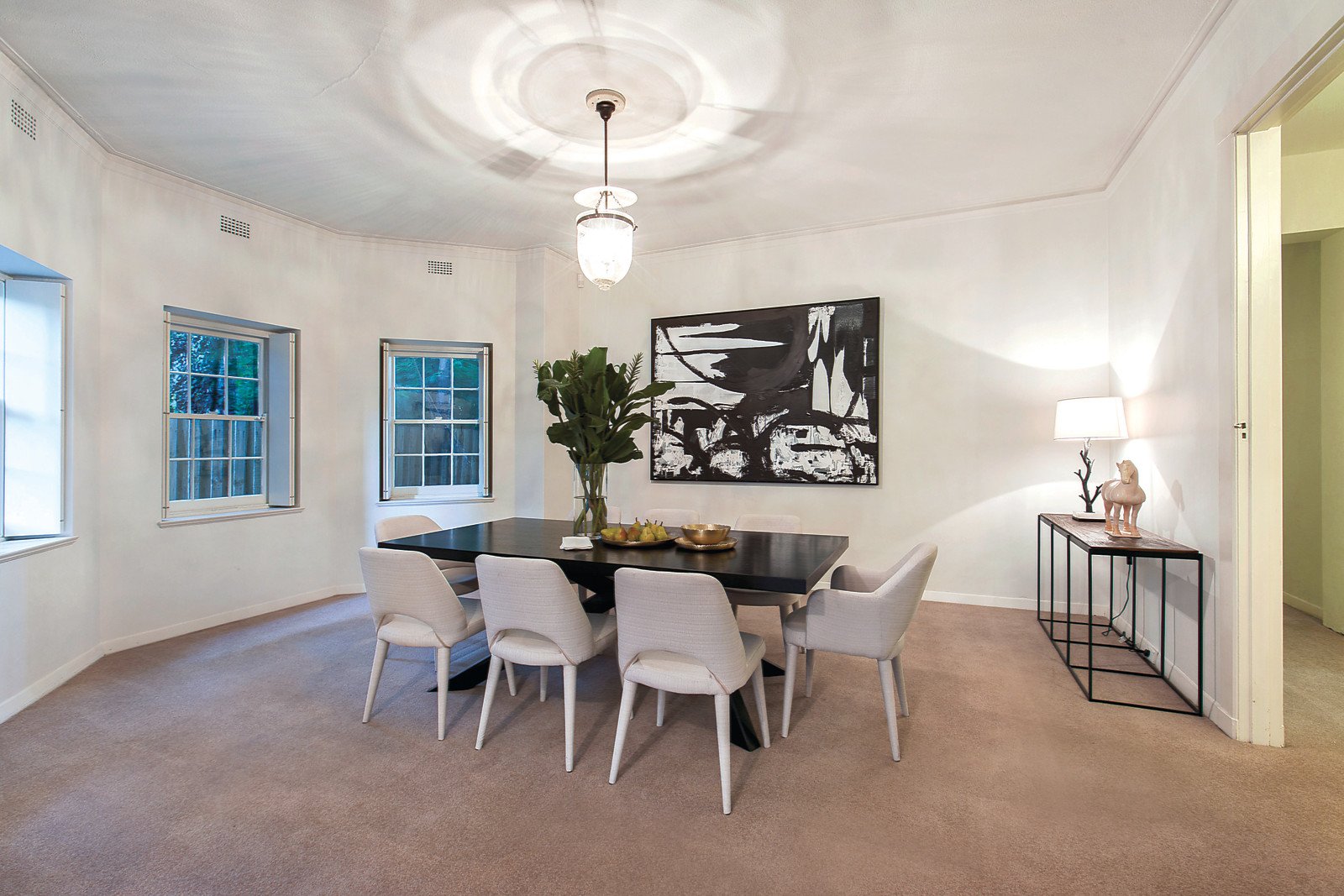 The extraordinary proportions are displayed through a welcoming reception hall, oversized sitting room with north-facing balcony, a study area and beautiful formal dining room. The large bright kitchen features a dining area and butler's pantry. Versatile and spacious accommodation comprises three double bedrooms, a study or 4th bedroom, a central bathroom and light-filled living room overlooking the exceptionally deep private terrace, the ideal venue for outdoor entertaining.