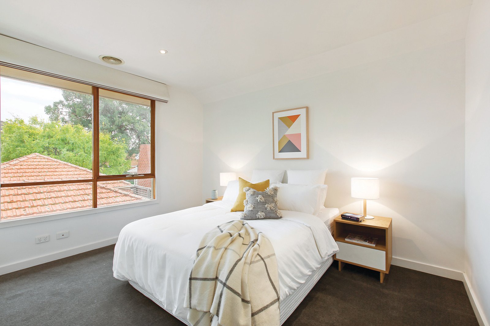 Appointed with Caesar Stone bench tops and Bosch appliances, the kitchen is flawless as it overlooks a meals / living area and large entertainers' size courtyard, whilst a separate lounge room provides a more formal living space. With its own discrete intercom entry and a lock-up garage, the home is secure, private and incredibly livable as it offers freshly carpeted bedrooms each with robes, a main bathroom and powder room, as well as European laundry, central heating / cooling, ducted vacuum and under stair storage.
