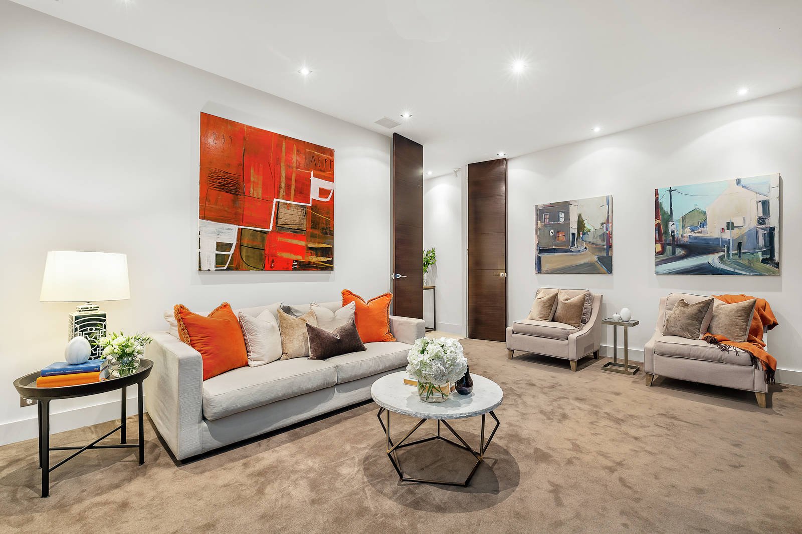 Three large bedrooms are all equipped with built in robes and ensuite access to two chic bathrooms including an ensuite main bedroom opening out to a private courtyard with water feature, ensuring that you unwind and relax in style. On the basement level there is a flexible lockable storage room that could also act as a games room. Heating and cooling throughout, alarm system, separate powder room, a laundry and secure undercover parking for two vehicles accessible via elevator complete the home.
