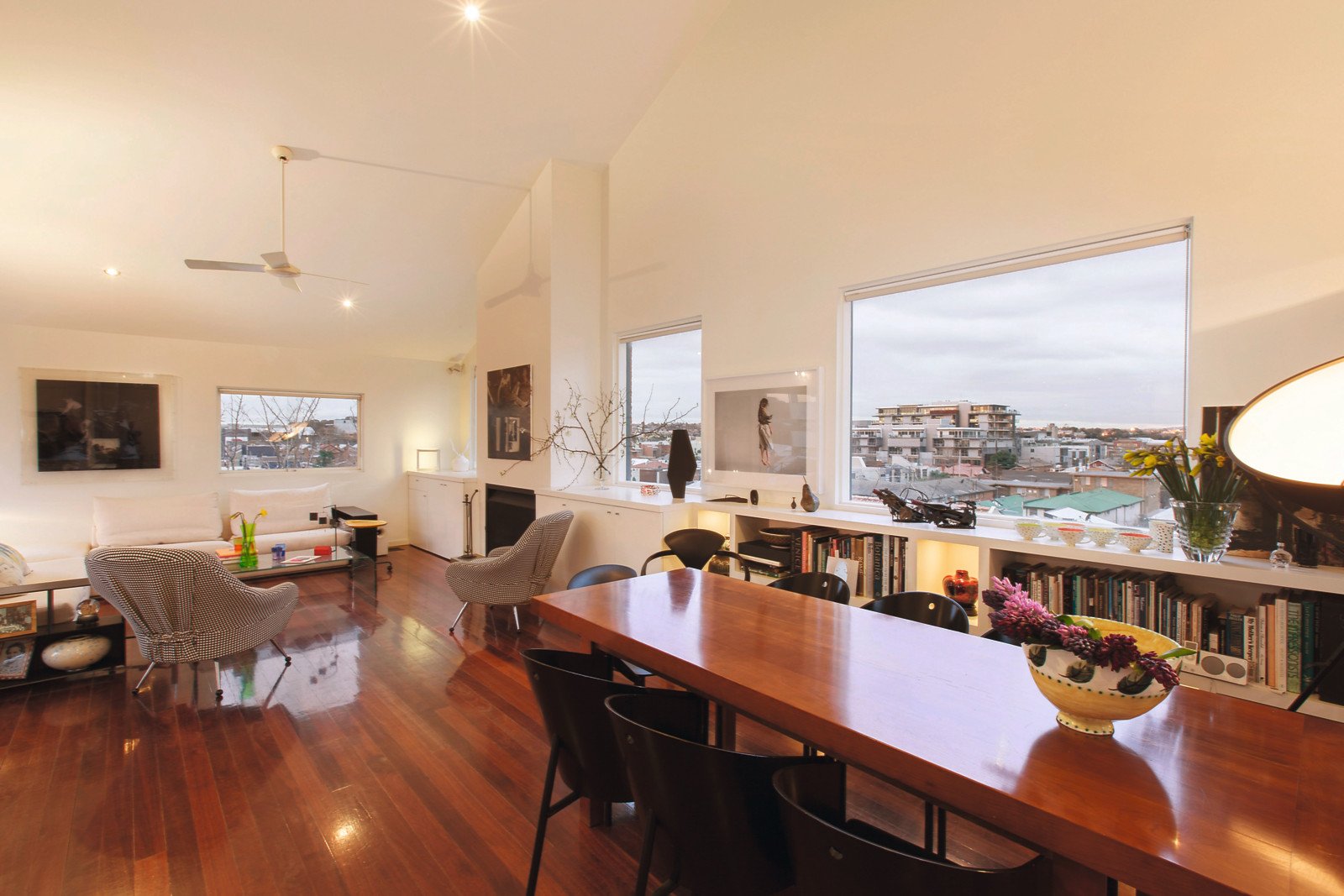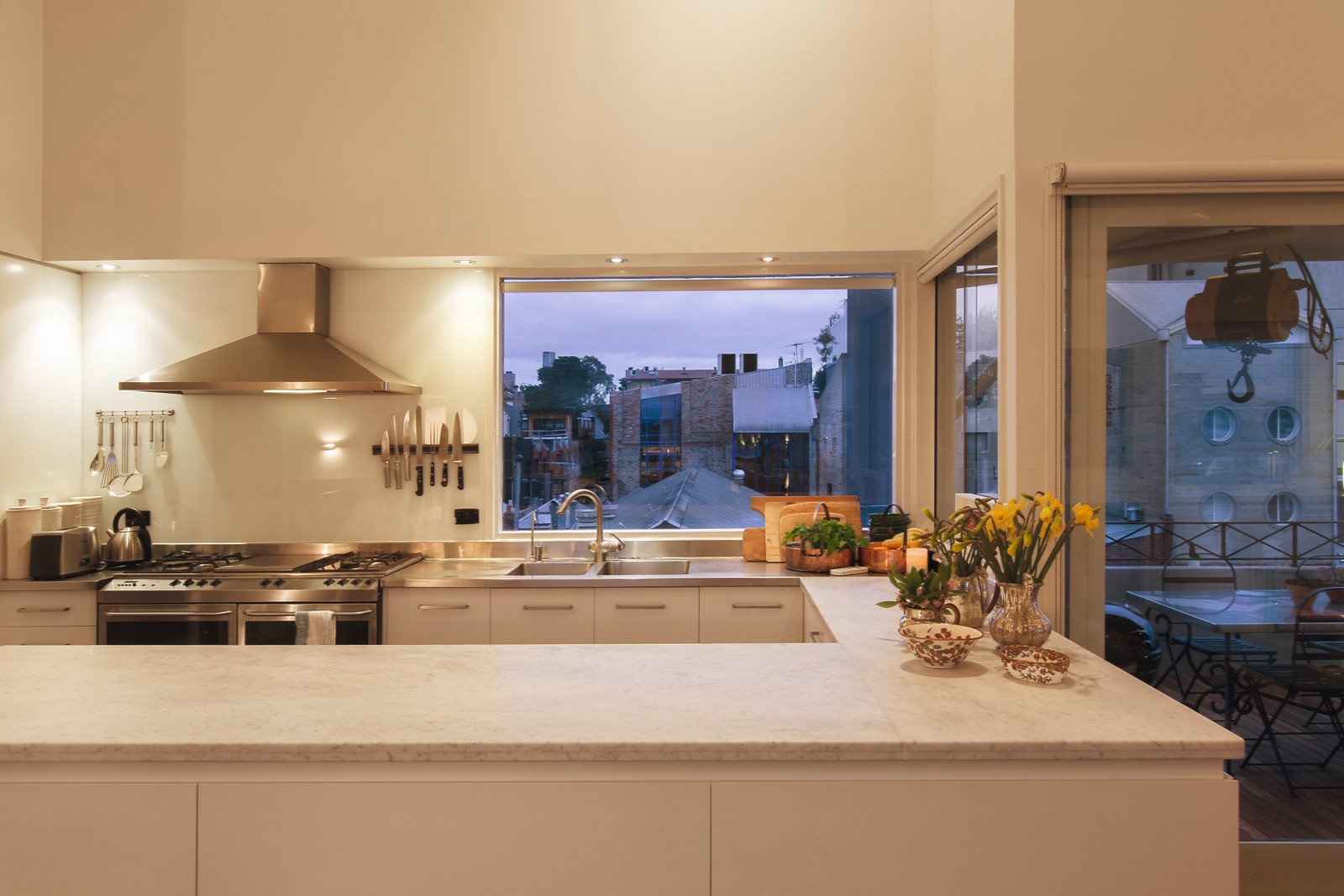 Beneath soaring vaulted ceilings and enjoying sensational outlooks from every angle, the superbly proportioned living and dining room with an open fireplace and gourmet marble kitchen opens to a covered north-facing balcony, ideal for entertaining. Evocative French oak antique doors reveal the fabulous main bedroom suite with stylish spa-ensuite, WIR/BIRs, north balcony and a fitted study. Extra high ceilings are continued through two additional bright double bedrooms appointed with fitted robes and a smart bathroom. Surrounded by original brickwork, the large sunny north-facing courtyard with spa is a wonderful venue for relaxing and entertaining.