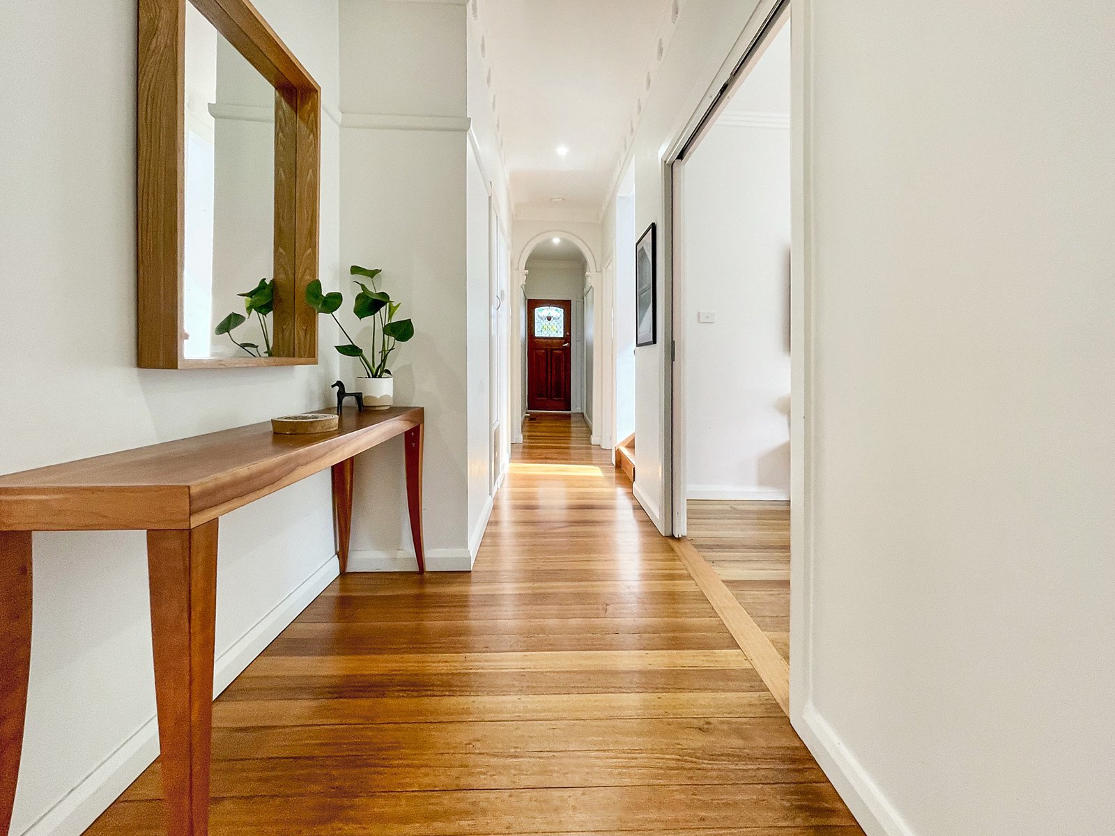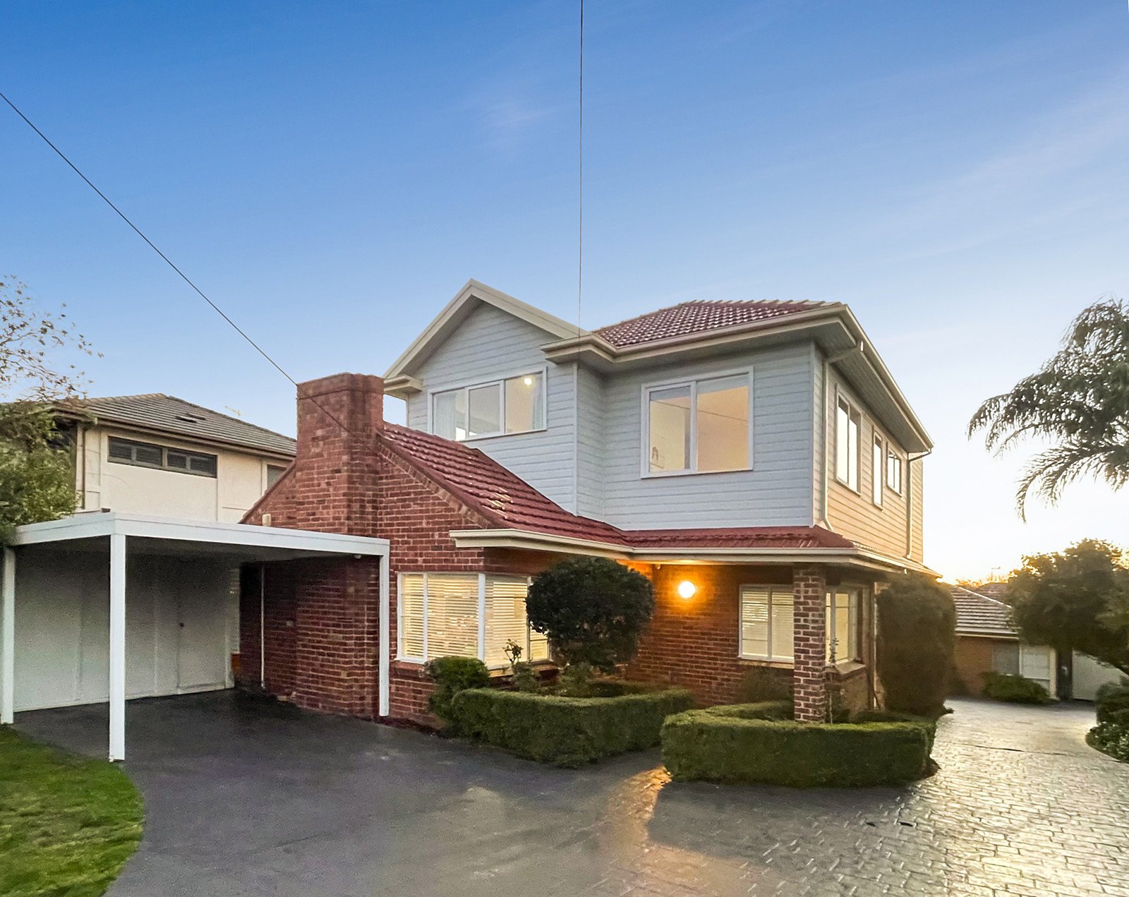 First-class design and contemporary quality bring a new era of spaciousness to this five-bedroom home, conveniently located with cafes and shops at the end of the street. The transformation from a 1950s clinker-brick original to a deluxe family home is inspired, with bedrooms on both levels, three living zones, a Smeg kitchen, and three premium bathrooms. The zoning is a winner for growing families, with a ground-floor family room, separate lounge, and an upstairs retreat. The stylish interior and easy-care outdoor area are perfect for today's living, from the original steel windows to Italian marble fan tiles in the ensuite, polished timber floorboards, ducted and split-system heating and cooling, and an entertainer's deck. Luxe features include a 90-centimetre Smeg range, a remote-control spa bath in the family bathroom, a top-end Kohler bath in the ensuite, Brodware tapware, and Villeroy & Boch basins. Even the laundry is planned to perfection, with custom-built storage, a drinks fridge and room for another fridge. Enjoy barbecues on the pergola-shaded deck, love living close to a choice of cafes, restaurants, shops and Highett train station, and be proud to own this well-appointed home.