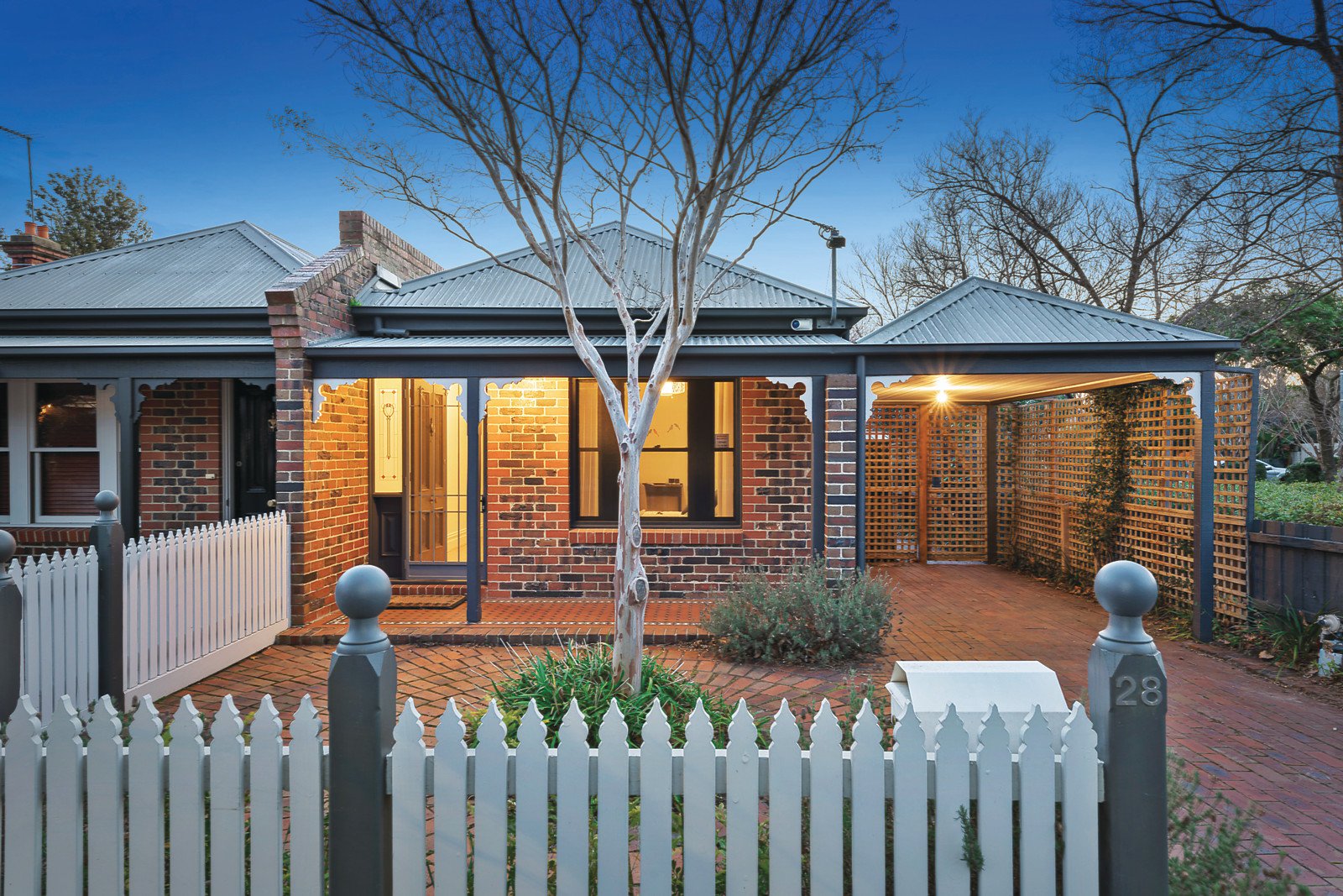 Nestled behind a picket fence this attractive Victorian-style cottage, one-of-pair, combines the benefits of contemporary design and layout with a preferred northern side aspect and windows delivering loads of light and warmth throughout the home plus leafy vistas from an unexpectedly spacious interior. The home features a long triple arched, contemporary timber hallway flanked by three bedrooms with BIRs, the large main also has an ensuite, a family bathroom with separate WC and a laundry. Through to a bright and generous living and dining area incorporating a stylish kitchen equipped with CaesarStone benches plus high quality Smeg and Asko stainless steel appliances and an electric awning over the north-facing window. All opening to a private rear deck and northern courtyard, providing ideal outdoor entertaining areas. Other features include alarm, ducted heating, OFP and R/C air conditioner (living), excellent storage including garden shed, a carport plus tandem off-street parking.