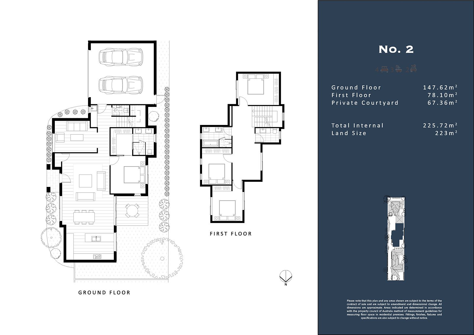 These two-storey contemporary residences will feature smart external styling introducing slightly differing configurations with interiors comprising, hardwood timber floors, four bedrooms, three upstairs with BIRs and a family bathroom; downstairs Master Suite with WIRs and ensuites plus sitting rooms or studies, powder rooms, laundries and expansive open plan family living/dining areas with contemporary Chef's kitchens featuring Miele appliances, CaesarStone Marble-look benchtops and quality 2 Pak joinery that open to quality Spotted Gum timber decks and private courtyard gardens. Other features will include fully tiled wet areas, heating & cooling, alarm/intercom system, landscaped gardens and remote double garage with direct internal access.