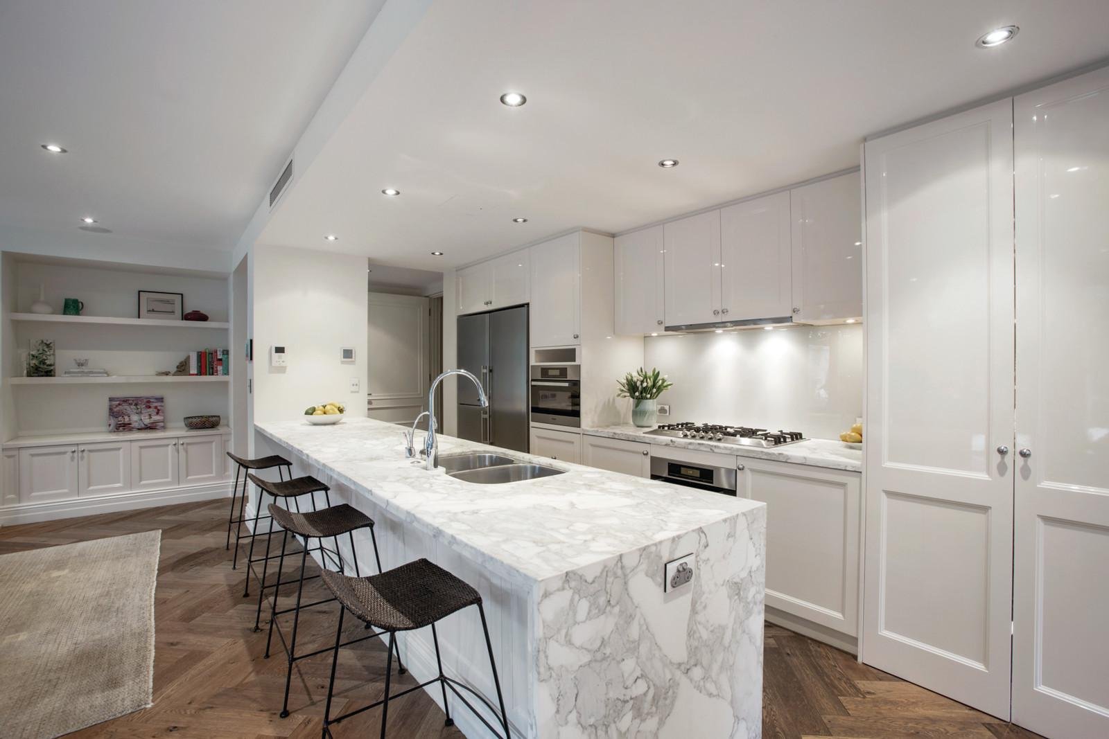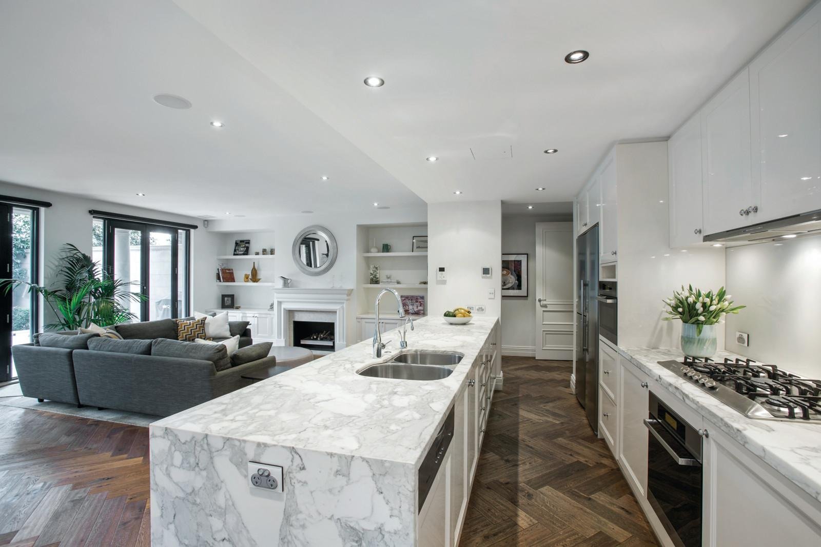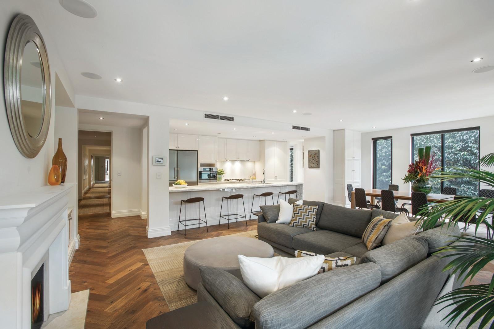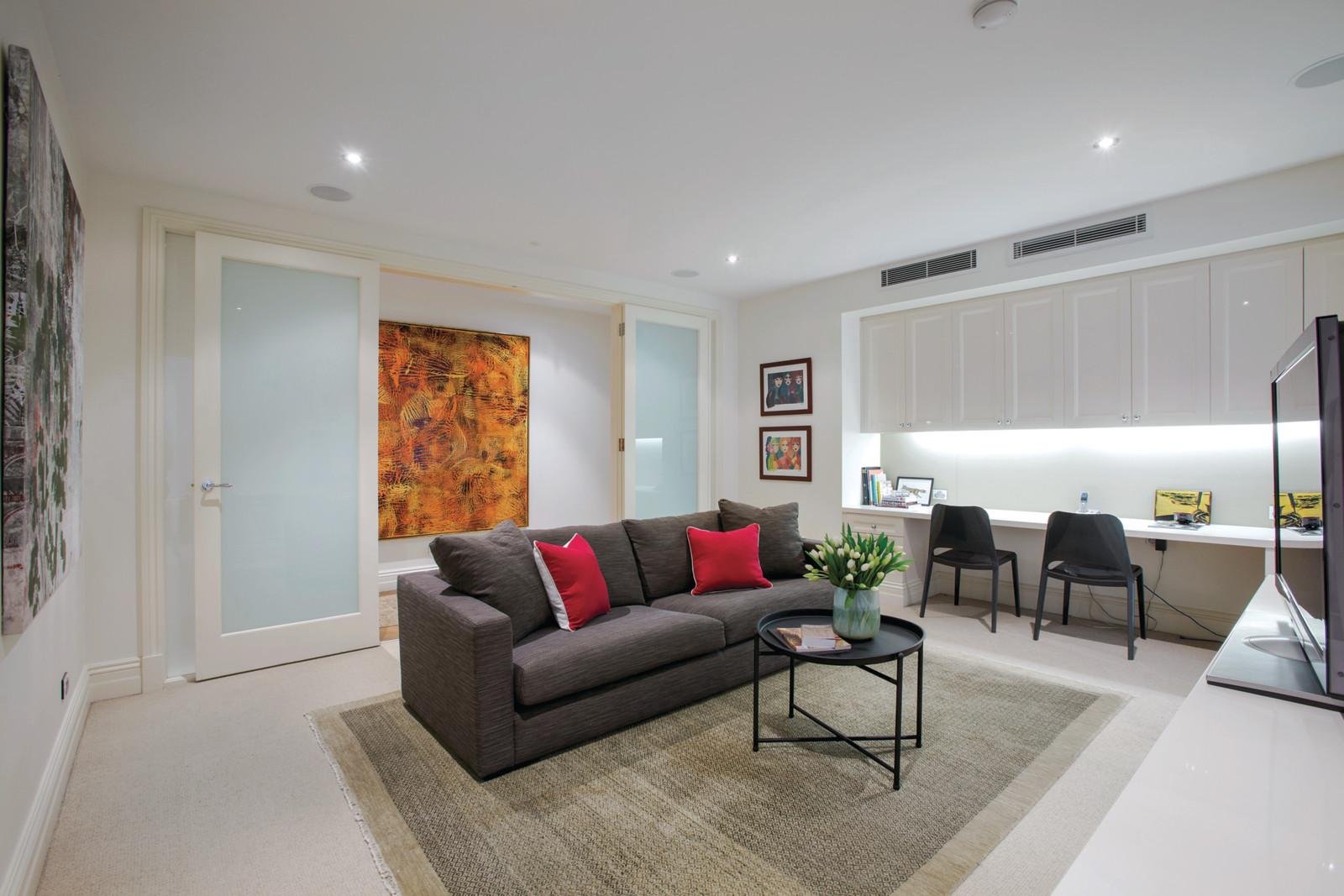 Surrounded on three sides by glorious landscaped private garden courtyards, 330 square metres (36squares approx.) of exceptionally versatile living and entertaining spaces are lavishly appointed with American Oak, Roman Travertine and C-bus technology. A wide gallery entrance hall introduces an elegant sitting room, an expansive home theatre room or home office with its own separate entrance and private courtyard and a tranquil retreat/living room. The generously proportioned living and dining room warmed by a gas log fireplace and stunning Calacatta marble kitchen boasting Miele appliances and a home office opens to a sensational completely private north-facing landscaped entertaining terrace with gas heated hot tub. Opulent bedroom accommodation includes a main bedroom with luxurious en-suite and walk in robes, second en-suited bedroom (BIR), two further double bedrooms (BIRs) and a third stylish bathroom.