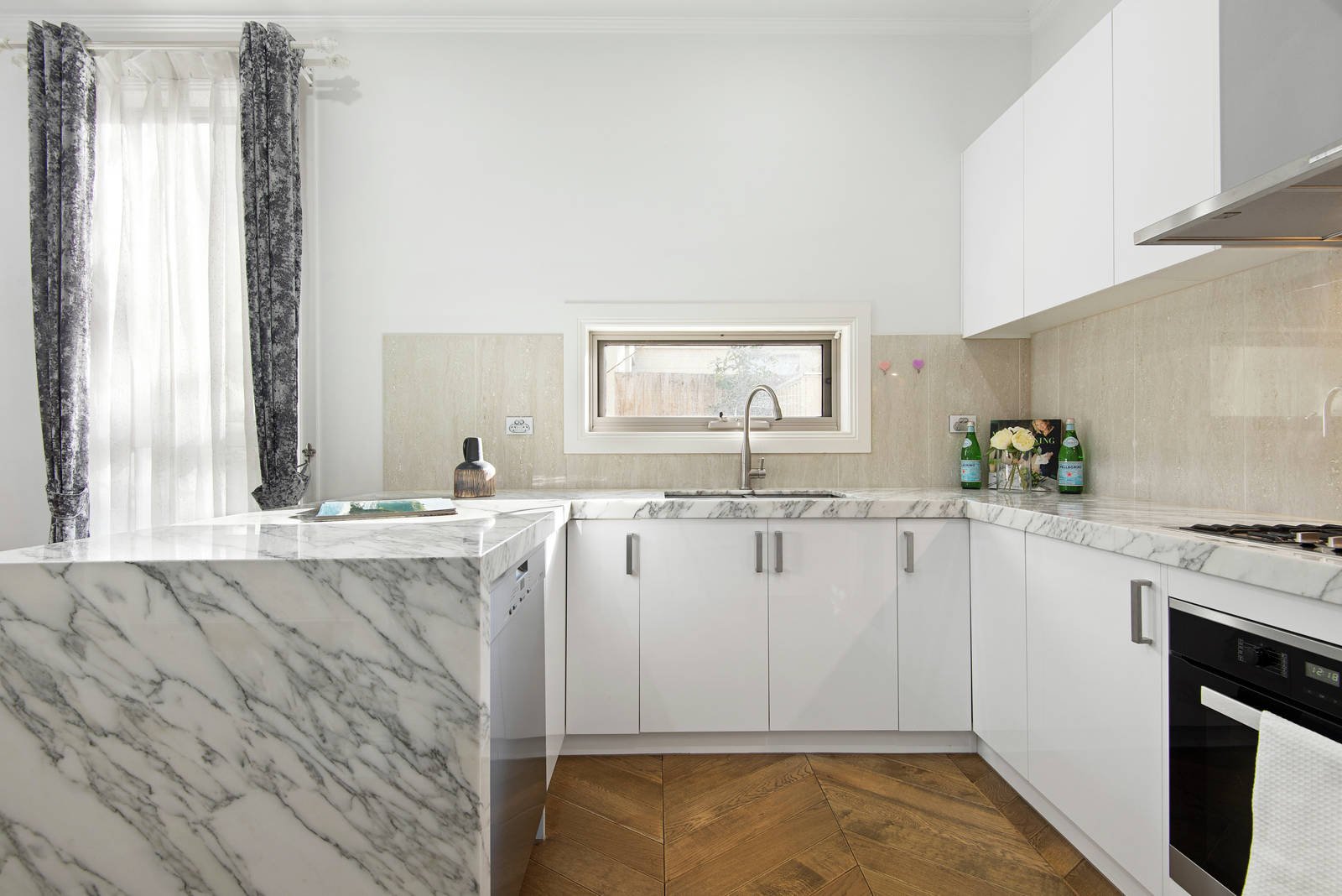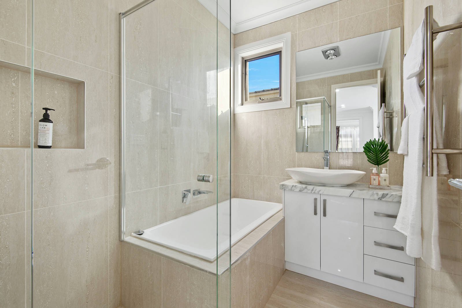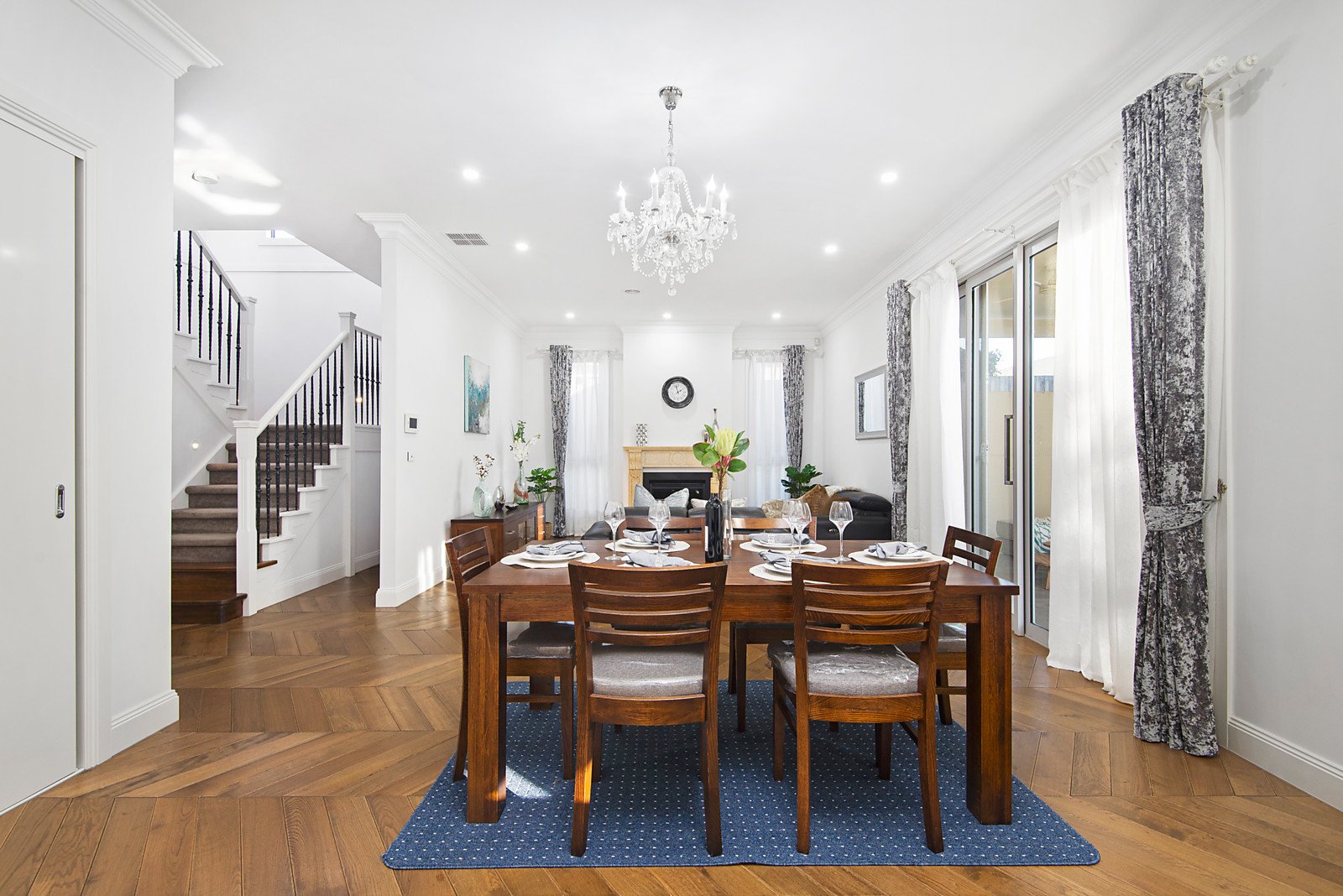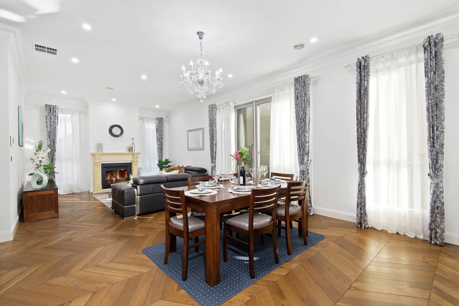Built to the highest quality, this magnificent home offers generous living spaces and an open plan design enhanced by luxurious appointments throughout. Lofty ceiling heights and European oak parquet add to the grandeur of the entryway, leading onto a sophisticated living area with gas log fireplace and stunning chandelier. An open dining and kitchen space, finished with Miele appliances and marble benchtops, seamlessly connects to a private alfresco zone, perfect for entertaining guests or to use as your own personal retreat. Upstairs, an impressive flexible space leads the way to two double bedrooms and grand master bedroom, with a dual-vanity ensuite, walk-in robe and sunlit balcony. While the substantial ground floor bedroom with dual-access ensuite is perfect for guests.