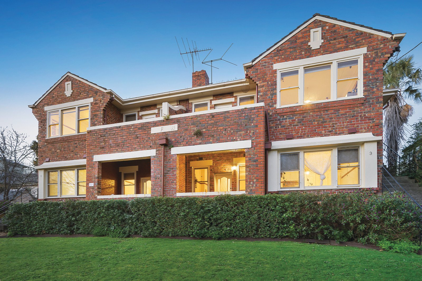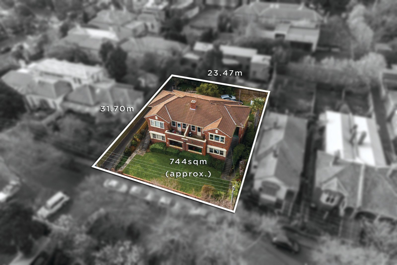 Offered for the first time in more than 60 years, this c1938 clinker brick block of four large (81sqm approx.) Art Deco inspired apartments represents a rare opportunity to acquire a blue-chip investment in a first class location. Each individually titled apartment comprises: entrance hall, spacious living room with OFP and balcony, two double bedrooms, kitchen, bathroom and on-title car park. Occupying a valuable 744sqm (approx.) allotment on the high side of a quiet cul-de-sac and enjoying the preferred northerly rear orientation, the property is within easy walking distance of Auburn railway station, Auburn Village shops, Swinburne University and bustling Glenferrie Road. In well maintained condition throughout , the property currently returns $82,380 per annum and offers tremendous potential to improve and enhance the investment return.