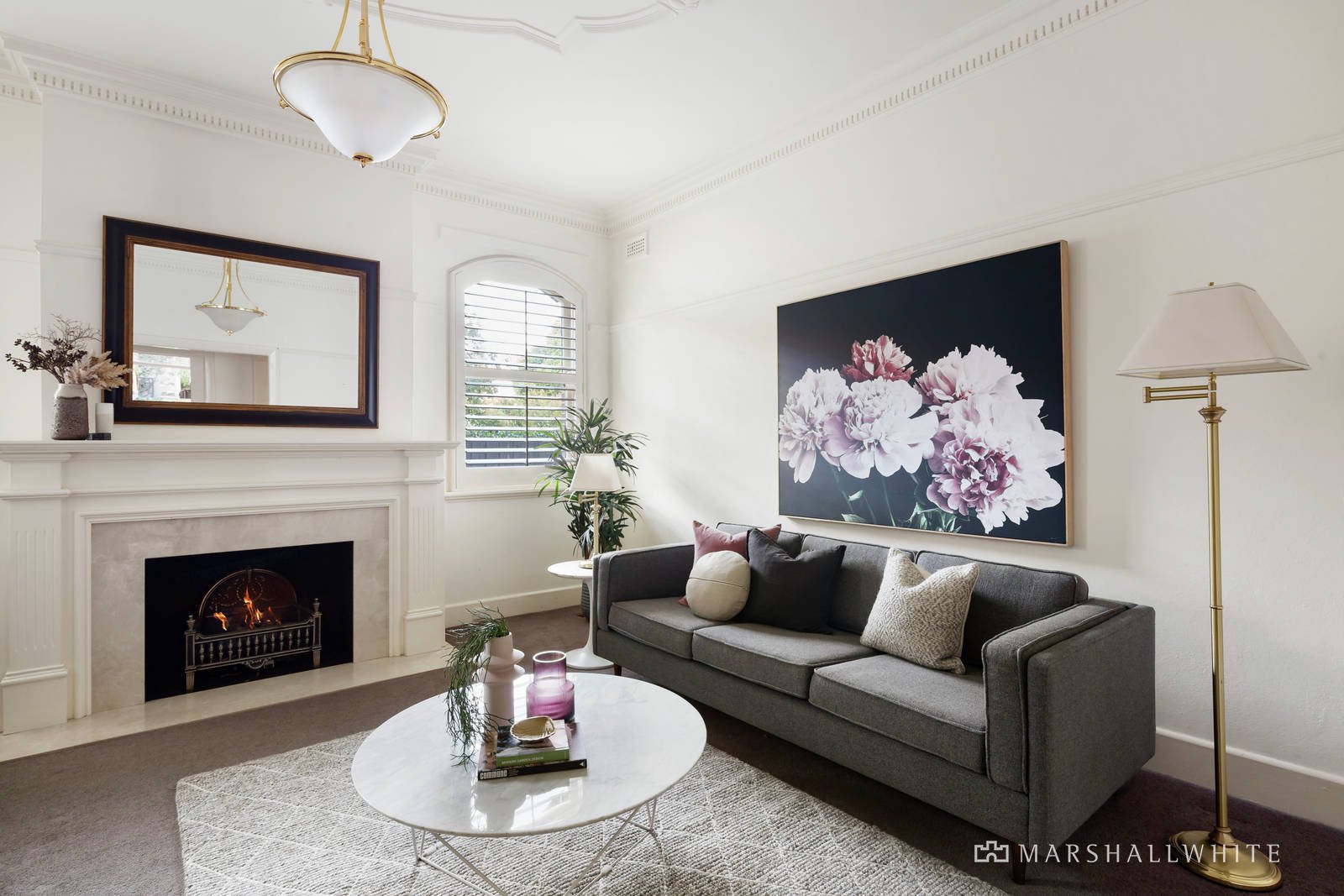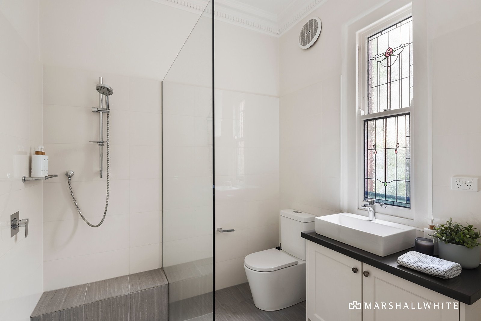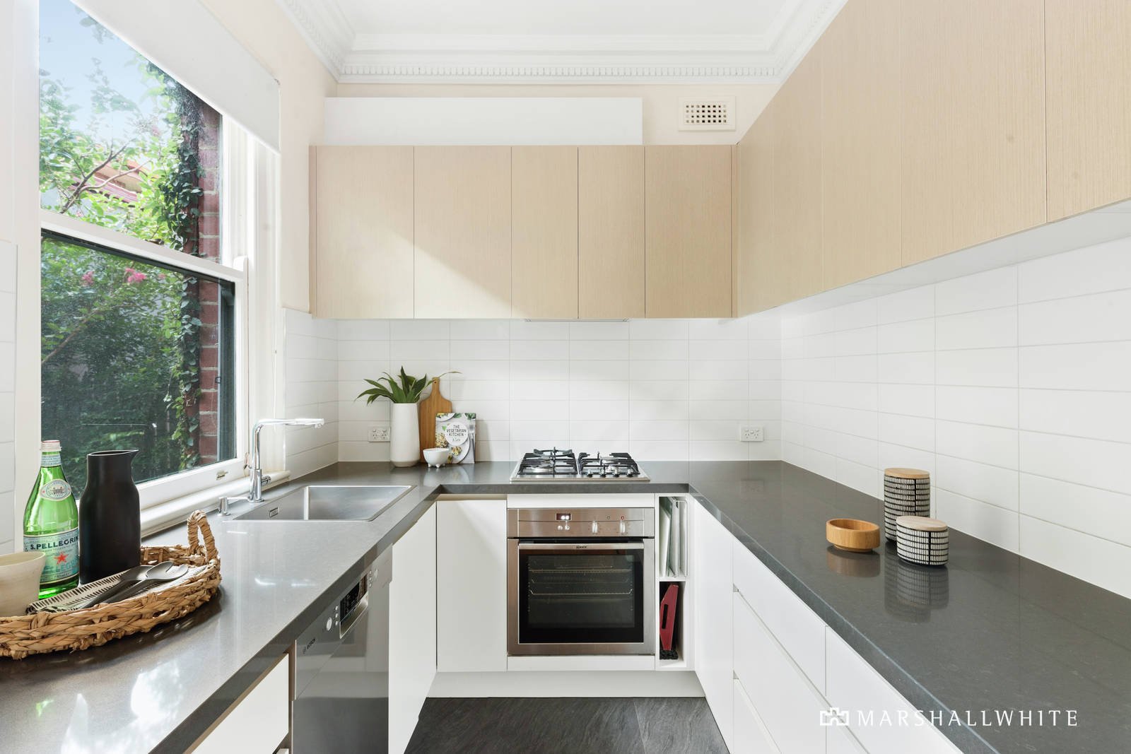 The spacious interior typical of apartments of the era features polished timber floors through the entrance hall leading to a generous living and dining room, two large bedrooms with BIRs, a renovated bathroom with concealed laundry. A stylishly renovated kitchen is equipped with stone bench tops, Bosch and Neff stainless steel appliances leads to a private wrap-around courtyard garden with ample room for outdoor living and entertaining. Other features of this superb apartment include ducted heating, gas fireplace(sitting room), Plantation shutters throughout plus a single garage and parking permit.