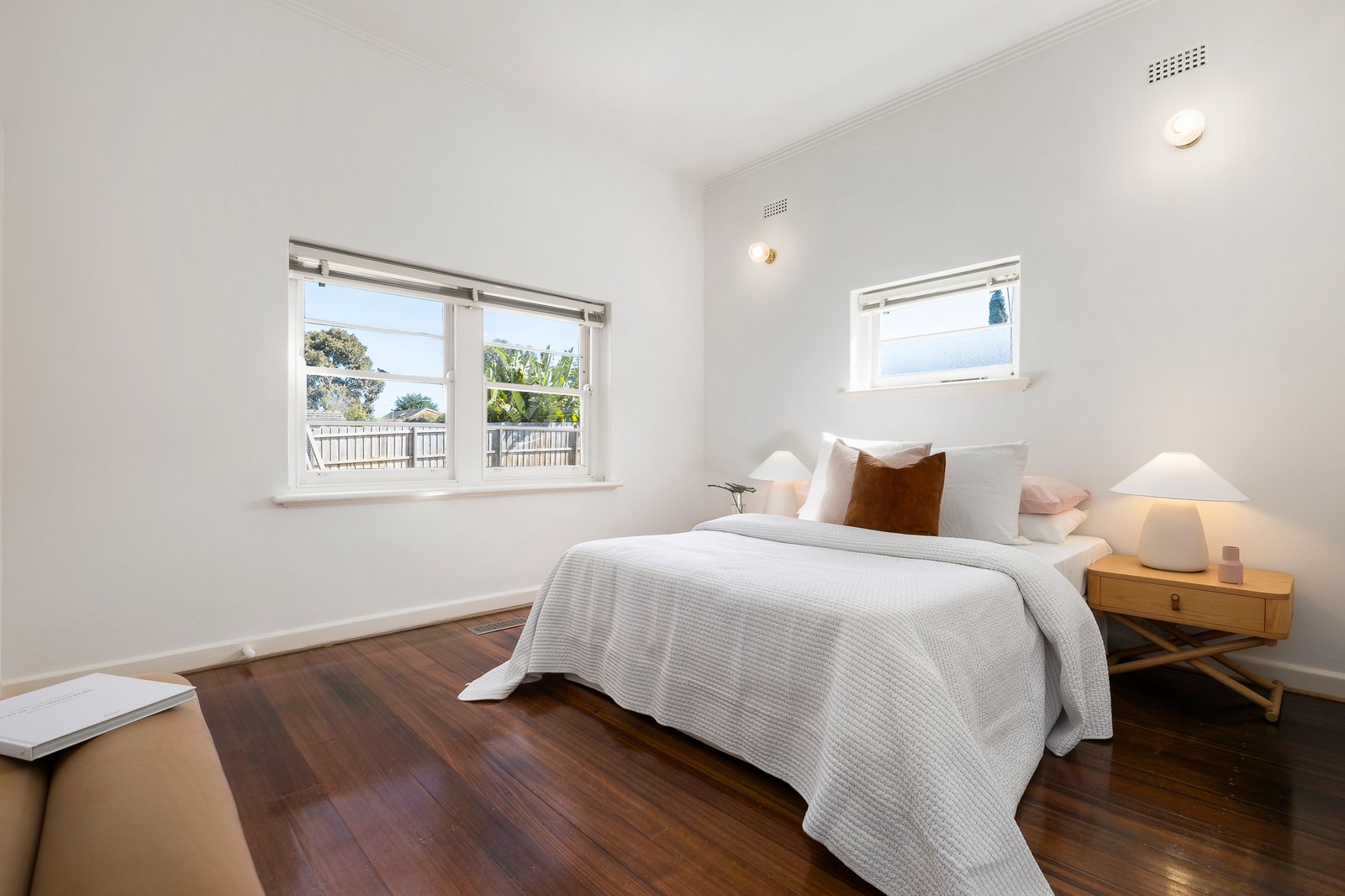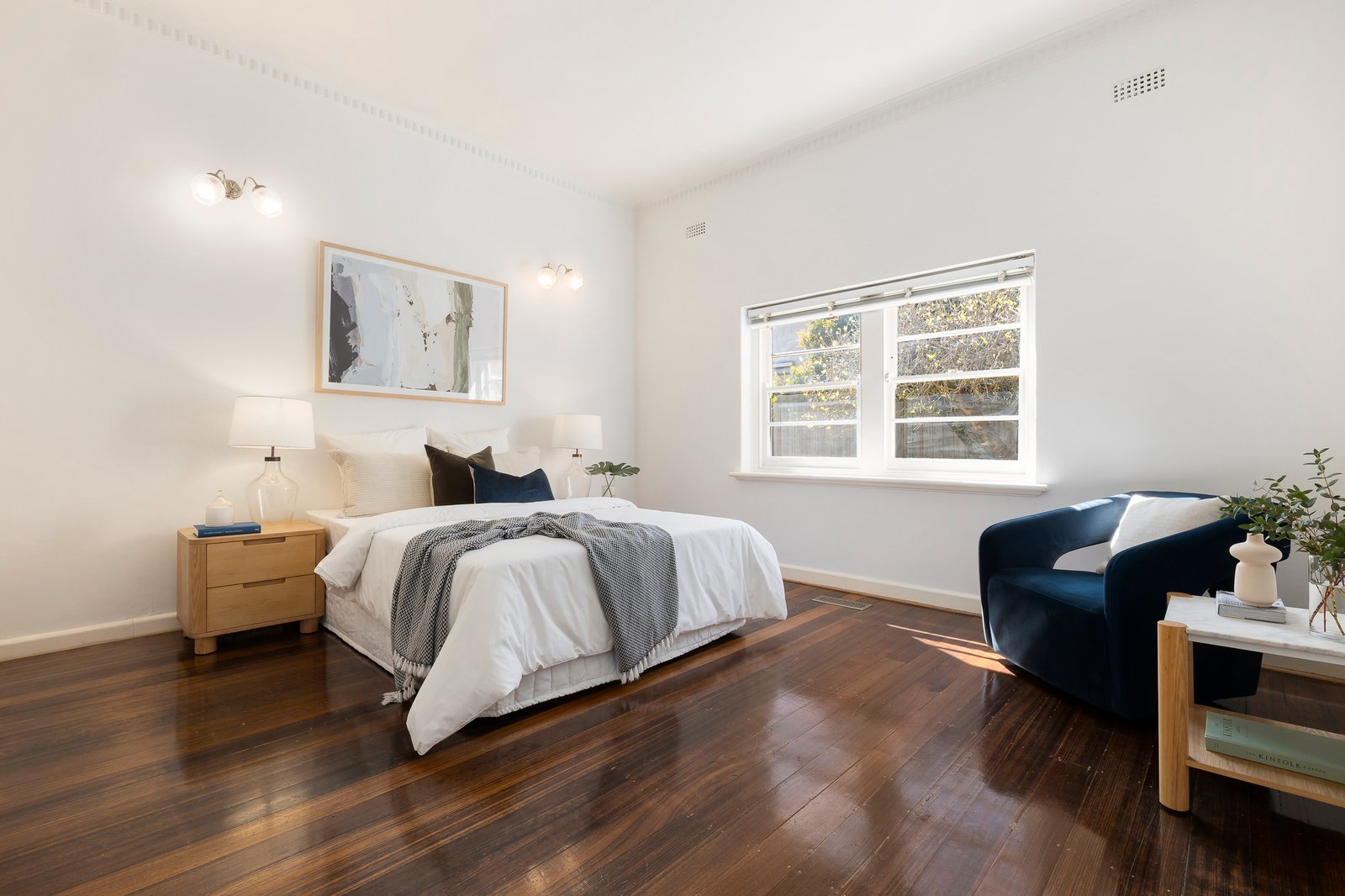 The spacious 102 sqm (approx), renovated and recently refurbished interior is typical of older-style residences being larger than today’s contemporary apartments. Featuring high ceilings throughout, polished hardwood floors and white décor – making it a sheer delight to enter. Opening to a generous living and dining room with leafy vistas of the front garden and street tree canopy, two double bedrooms, one with an adjacent study, a stylishly renovated bathroom with laundry facilities and an updated kitchen equipped with quality appliances. Other features of this truly delightful apartment include quality fixtures and fittings, ducted heating, OFP and a car space on title.