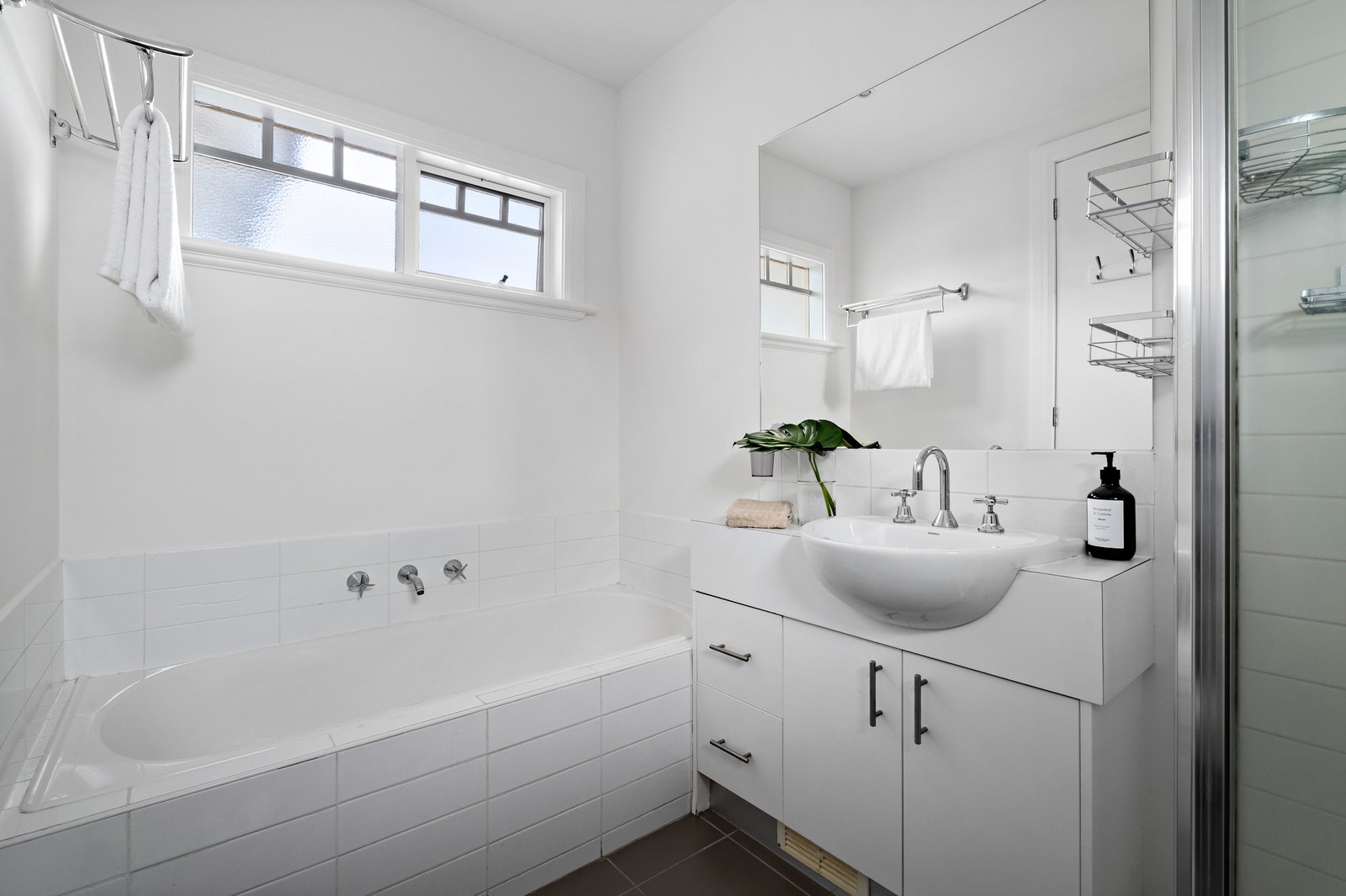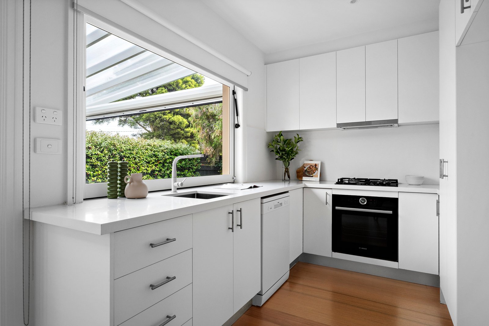 The inviting ambience is immediately appreciated upon entry where timber floors and picture windows define the generous living and dining areas. The sleek gourmet kitchen is appointed with white stone benches, a Bosch oven and a fabulous tilt window providing seamless access to the deck for entertaining. Glass sliders extend the dining area out to the expansive undercover al fresco deck shielded on the exposed sides by sunblinds to create the perfect conditions for all weather outdoor dining and entertaining. Beyond the deck, a large lawn area surrounded by lush greenery is a peaceful northwest garden sanctuary. There is a double bedroom with robes and a powder-room on the ground level, while timber stairs lead up to two additional double bedrooms with built in robes and a bright bathroom.