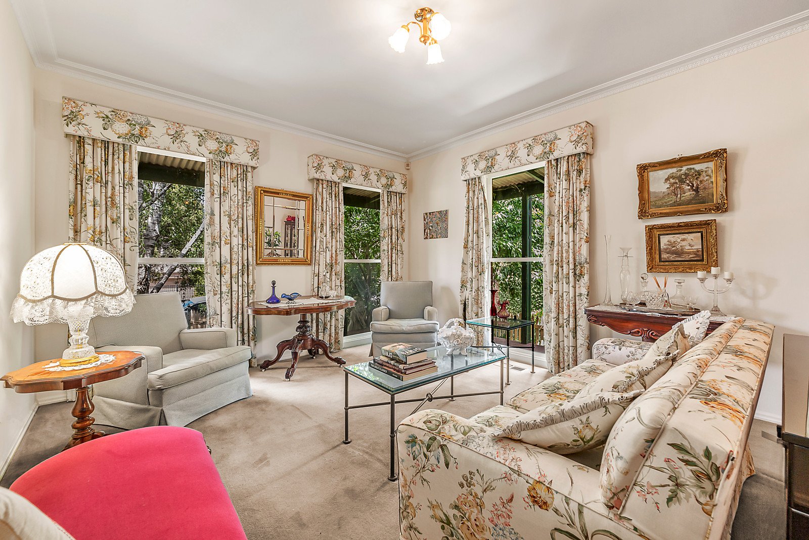 Ideally positioned in a tranquil tree-lined Sackville Ward street, this lovely home will surprise and delight with its spacious interiors, two large living areas, multiple courtyard options and oversized double garage with private lane access. Treasured by the one family, the single level accommodation is ideal for downsizers while still offering versatile, generous indoor and outdoor living options, which include a large formal lounge and dining room, open-plan tiled kitchen/meals and family room, three bedrooms including master with walk-in robe, ensuite and garden outlook, and a wonderful wraparound front deck. With an effortlessly flowing layout and favourable westerly aspect splashing blissful afternoon sun on the private established gardens and three courtyard areas, there is much to enjoy now with potential to apply your own modern aesthetic in the future. Other notable features include new evaporative cooling, ducted heating, a new oven, quality window furnishings, pure wool carpets, a large separate laundry with external access and extensive built-in storage throughout. With minimal thoroughfare traffic through the tree-lined street, this idyllic haven also boasts the advantage of a brilliant position in the Sackville Street precinct nestled between Burke Road and Glenferrie Road, walking distance to Carey Grammar, Genazzano, Xavier, MLC, Camberwell Girls and Trinity Grammar, with easy access to Cotham/Burke Road trams and Auburn Road's boutique shopping strip a short drive away. Low-maintenance and ticking all the boxes for space, comfort and privacy in a sought-after pocket of Kew.