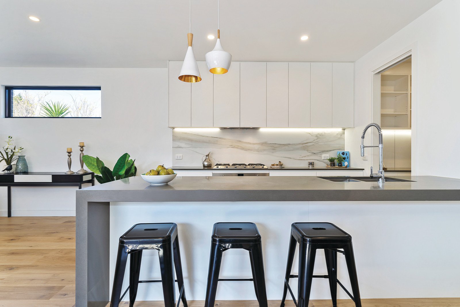 Streaming with natural light inside, wide oak floors flow through the entrance hall to an expansive living and dining room with a state of the art European kitchen featuring stone benches and a butler's pantry. The living space opens to a private north-facing courtyard with deck for al fresco dining. The spacious main bedroom with lavish en-suite and walk in robe enjoys downstairs serenity while a sensational children's zone upstairs comprises a second gorgeous bedroom with chic en-suite and walk in robe, two additional double bedrooms with built in robes, a third stylish bathroom with freestanding bath and large retreat with study nook.