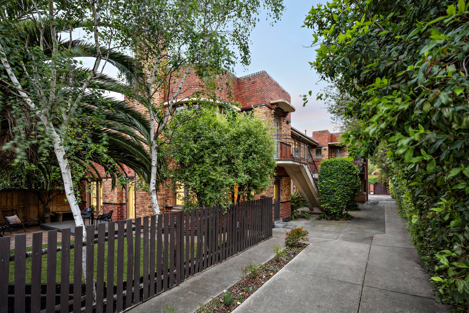 With its irresistible Art Deco charms seamlessly connected to one of the largest apartment gardens you will find in Elwood, this exceedingly rare two-bedroom, circa-1940 classic, also offers the added prize of its own lock-up garage to fully evoke the feel of a house. Set to the front of a boutique collection of just six, the home is sheltered by a large established palm tree and reveals an iconic, curved façade to help form a perfect synergy with the romance of its sought-after ‘Poets’ Corner’ position.