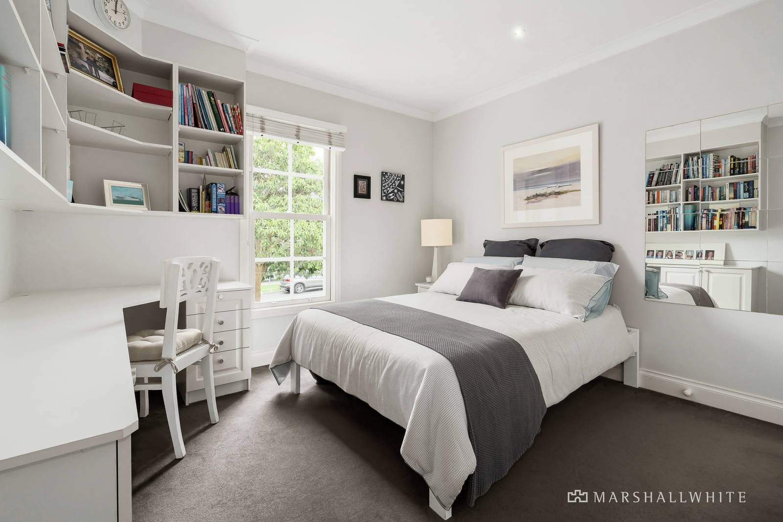 Superb design makes every aspect of this four-bedroom residence exceptional, from its Hampton Hill location to big bay views and a convenient location around the corner from shops, cafes and public transport. Designed with living zones and bedrooms on each level, you can see the bay and sunsets from the well-appointed upstairs lounge, lie in bed or sit on the upstairs terrace and watch yachts sailing by, and enjoy the indoor-outdoor flow from the lounge and dining room to the courtyard garden. Every room is impeccably presented and feature-rich. It's perfect for busy families wanting a central address minutes from schools and an easy walk to the beach and parks. Natural light streams into the double-height entry foyer, living zone and Blanco kitchen, there's a ground-floor bedroom/home office with an open fireplace, two bedrooms with built-in desks and shelving, and a double garage for secure parking. Take the time to admire this streetfront home loved for its many features, including inviting outdoor spaces with low-maintenance greenery, a built-in barbecue and fishpond. A prized retreat in the heart of Hampton, ready to move in and appreciate the timeless architecture and excellent privacy.