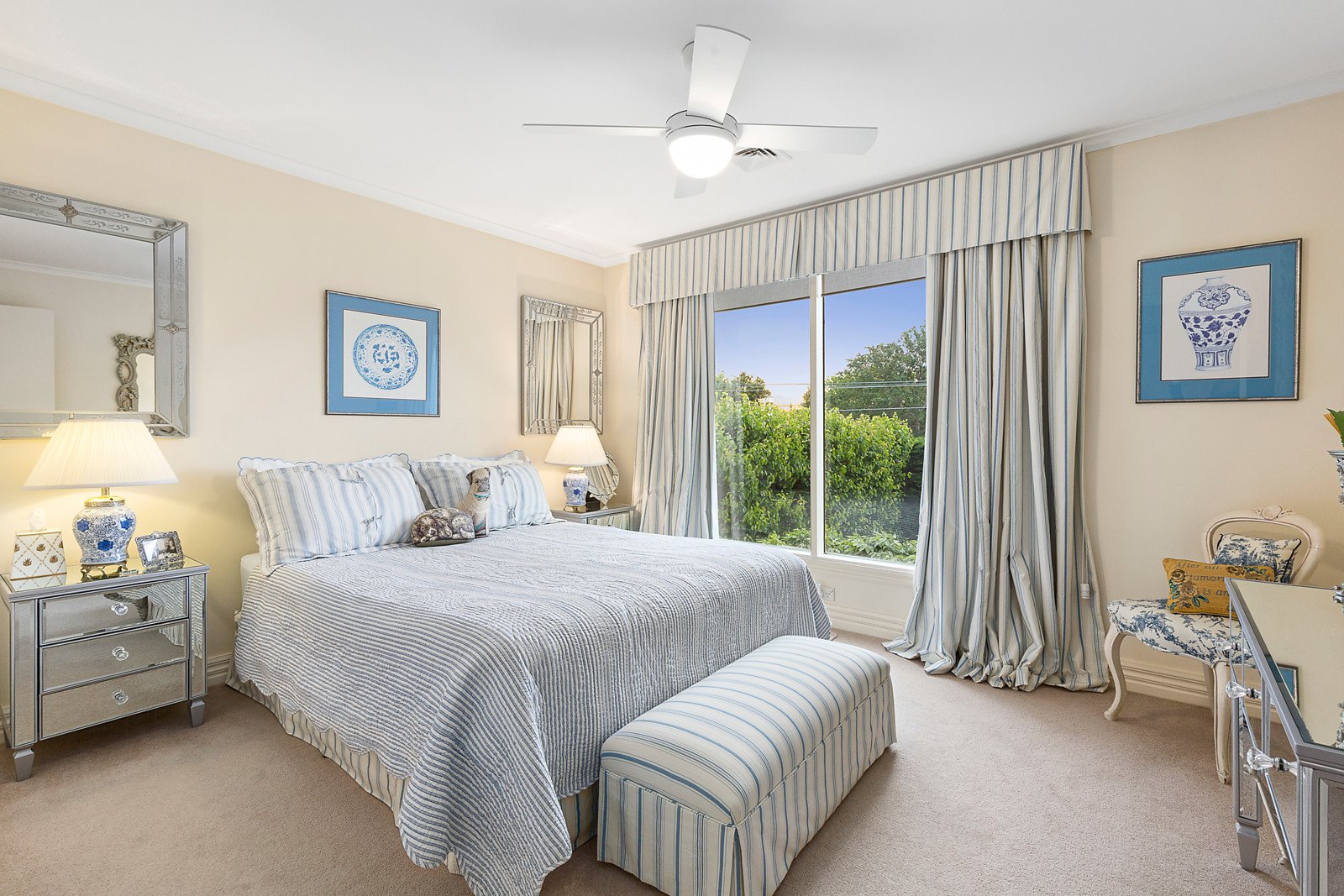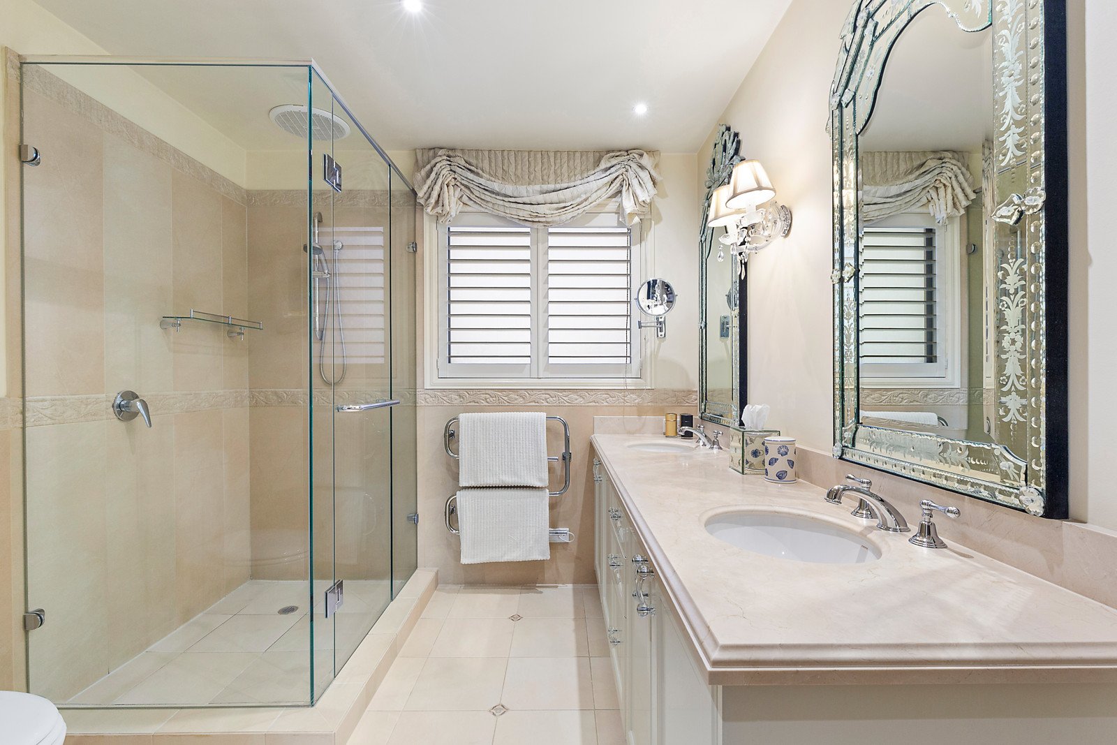 A beautiful home with an exclusive address is perfect for low-maintenance living near the beach. The design is spacious and stylish, with two living zones that open onto private and perfectly landscaped courtyards. This can be your private Brighton oasis, with the spaciousness of three bedrooms, a deluxe main bedroom suite with custom-designed dressing room and ensuite, bar room, and undercover outdoor dining area. New kitchen appliances include a Bosch combi oven, warming drawer and Miele dishwasher, and every room reveals a sense of refined style. Quality features enhance this elegant home. There's efficient ducted air conditioning and heating, a Jetmaster gas fireplace, solid timber floors, garden lighting, and garage access via remote-control security gates. Botanical beauty is on show in the three courtyards, with ornamental pear, buxus and cypress hedging, and white wisteria cascading over columns. Prestige location is metres from the beach, Elsternwick Park and waterfront cafes are nearby, and it's an easy walk to schools and Martin Street's shops and cafes.