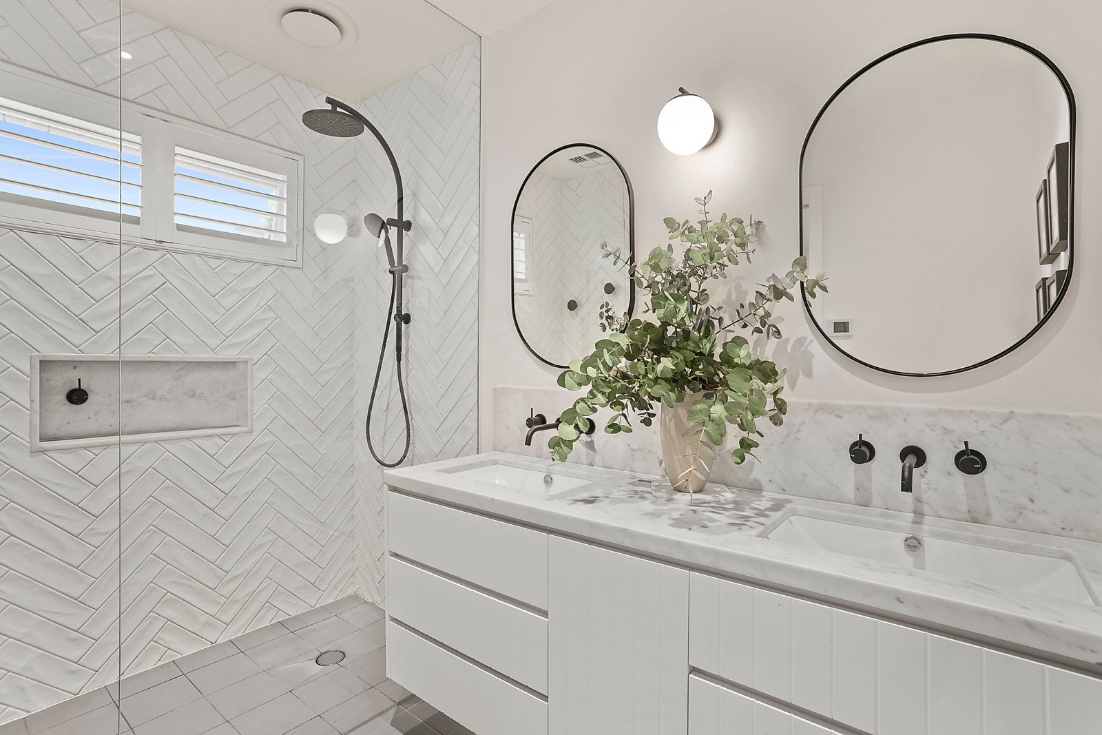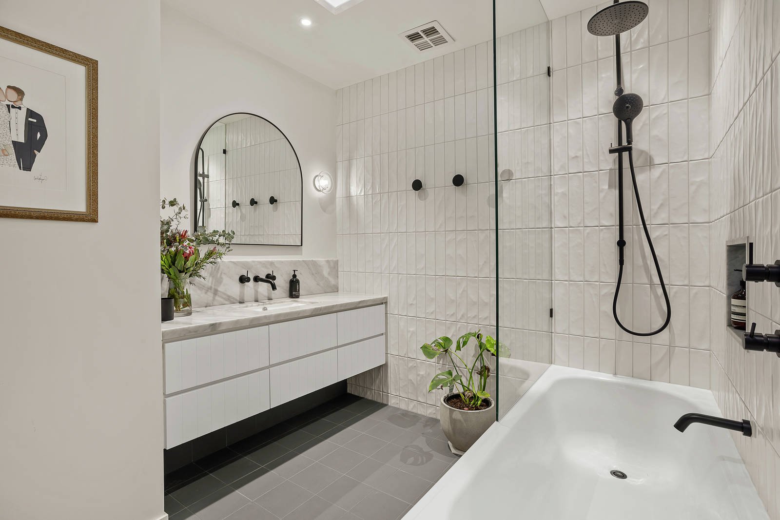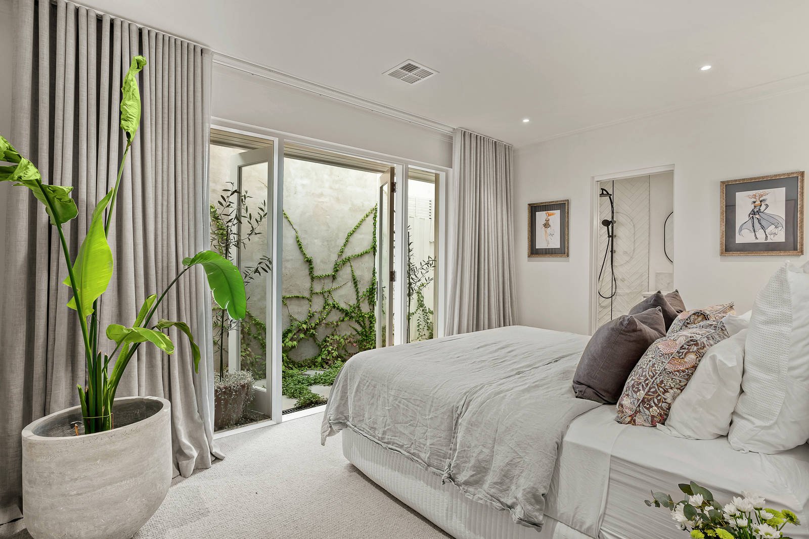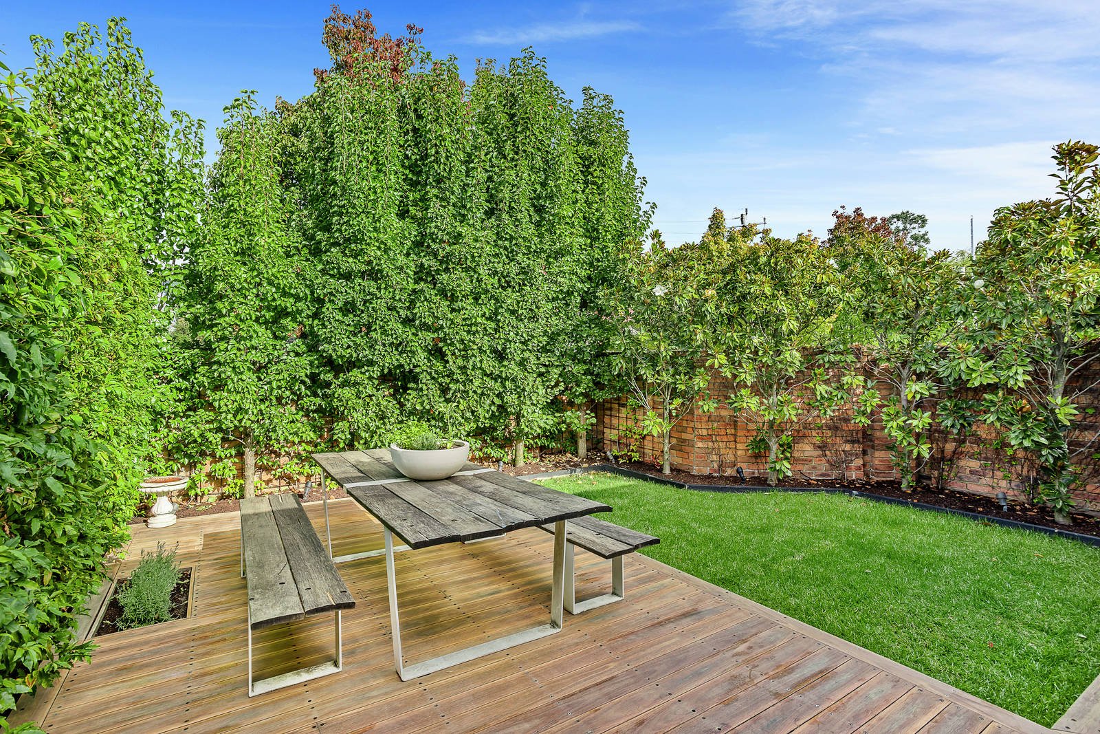 Spotted Gum floors flow through the entrance hall to a sun-drenched open plan living and dining room with a designer kitchen boasting Carrara marble benches and European appliances. Bi-fold doors open the living spaces to the entirely private northwest garden with a large Blackbutt timber entertaining deck with built in BBQ, all surrounded by tall greenery. The gorgeous main bedroom with walk in robe and chic en suite is matched by two additional bedrooms with built in robes and a stylish bathroom. Both bathrooms have heated floors.