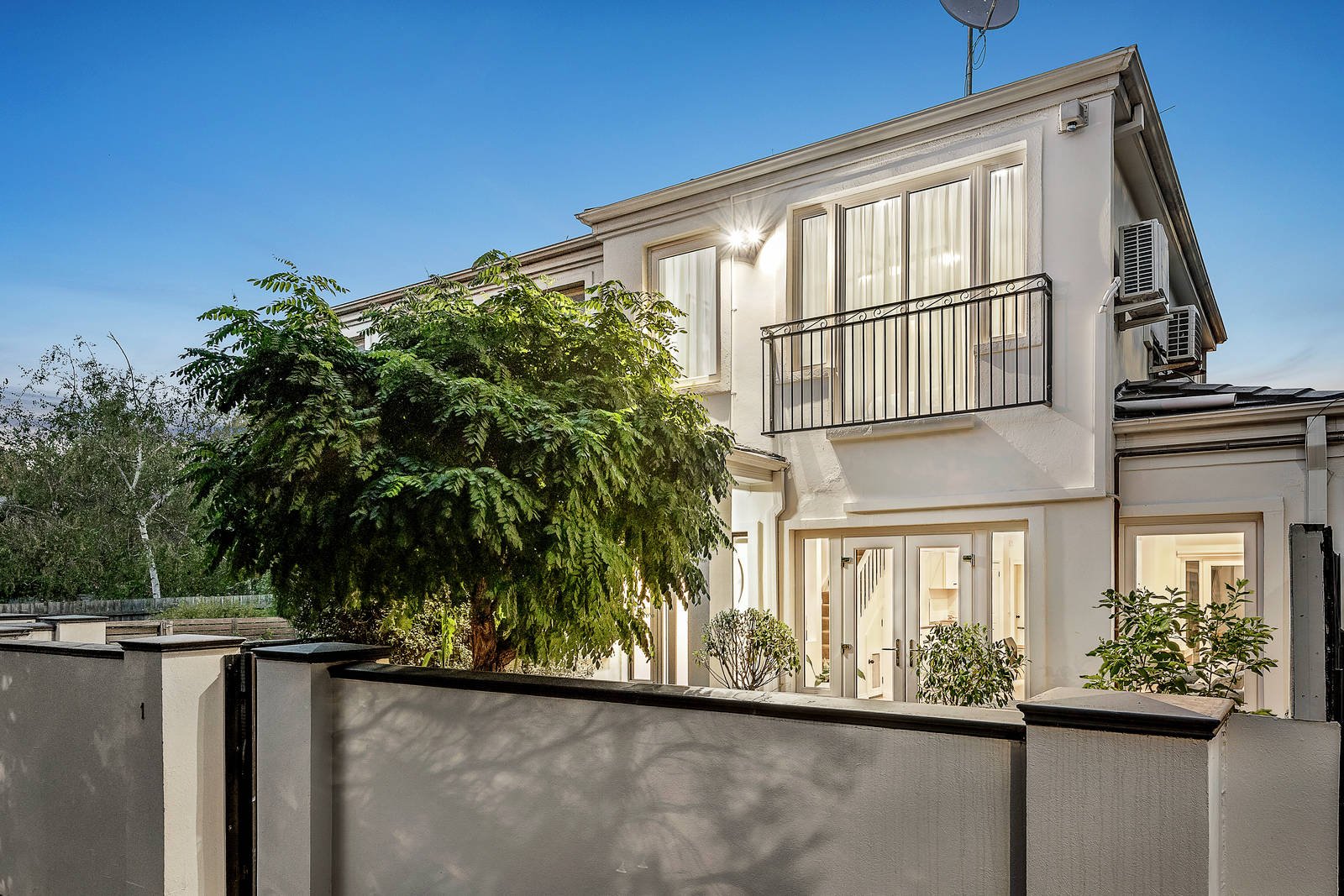 Enjoying its own street frontage behind a high walled garden, this impeccably presented contemporary residence is generously proportioned, with an inviting open plan living and dining room featuring timber floors and a gourmet kitchen superbly appointed with German appliances. Double-glazed German-imported windows and doors are featured throughout, with the living and dining area flowing to a private northeast-facing forecourt and a second north-facing courtyard. The spacious family accommodation upstairs comprises a main bedroom with walk-in-robe and newly-renovated en-suite/bathroom, and two additional bedrooms with built in robes. Responding effortlessly to modern family lifestyle requirements, it is superbly located just moments from Darling station, Malvern Rd shops and cafes, Gardiner's Creek, Hedgeley Dene, great schools and easy freeway access.