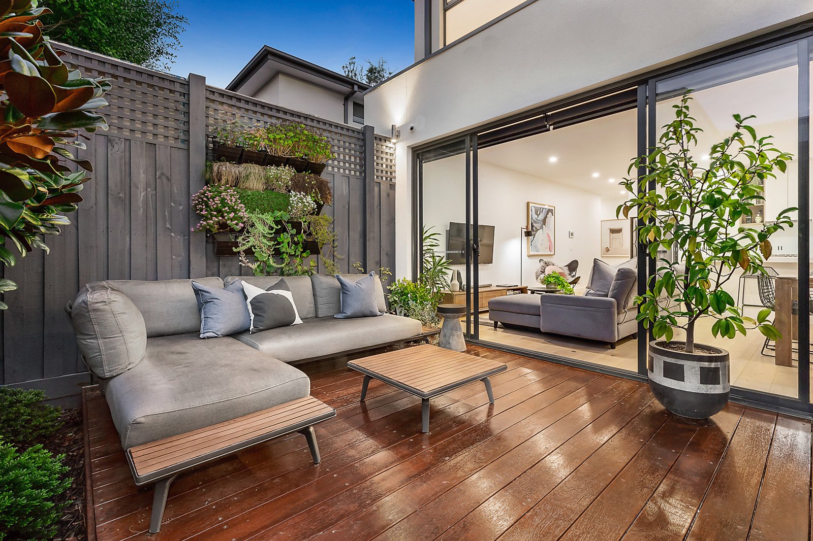 Four-bedroom contemporary townhouse is a private oasis close to parkland, Highett's fine array of cafes, bars and shops, and an easy walk to Highett station. Freestanding and set back from the street, this is tailormade for relaxing on the sun-drenched deck, loving the open-plan living zone and Miele kitchen, and appreciating the convenience of a ground-floor main bedroom suite. Like-new interior is finished to a high standard with video intercom entry, engineered timber floors, reverse-cycle air conditioners, USB power points in all main rooms, security cameras, and a timber staircase. The main bathroom, ensuite and powder room have a luxe edge with contemporary finishes, reflecting the care that has gone into creating this first-class residence. Excellent design includes an upstairs study zone, perfect for working from home. The sun-drenched courtyard garden's deck, artificial grass, privacy hedging and a water tank are easy-care, and there's a garage and your own guest parking. Perfect choice for lifestyle living near St Agnes Primary School and in the Sandringham College zone.