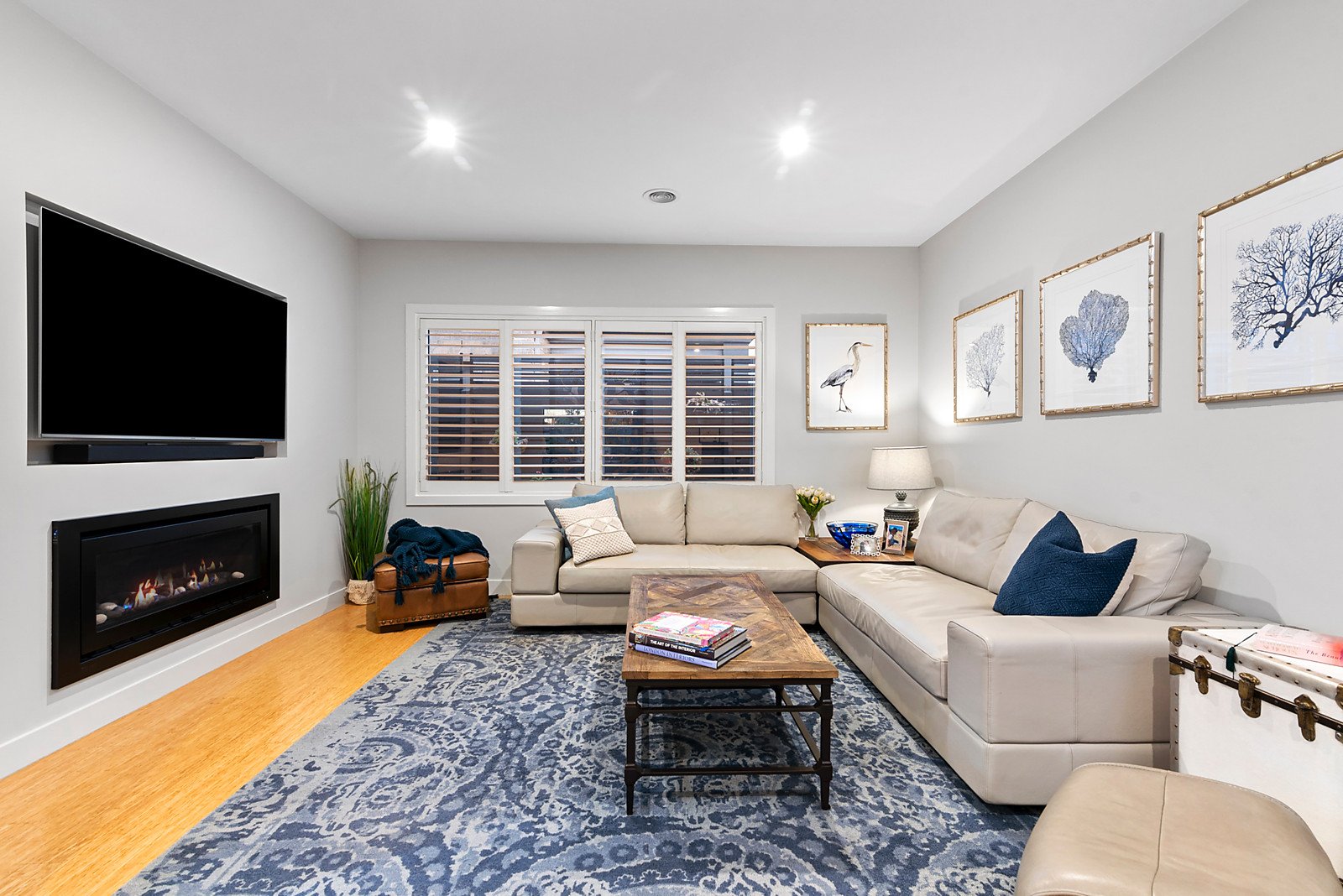 Set privately behind brush fencing with a freshly landscaped front garden the desirable single-level layout enjoys sun-drenched interiors in neutral hues, stylish with near-new plantation shutters, bamboo timber flooring and contemporary pebble gas fireplace.