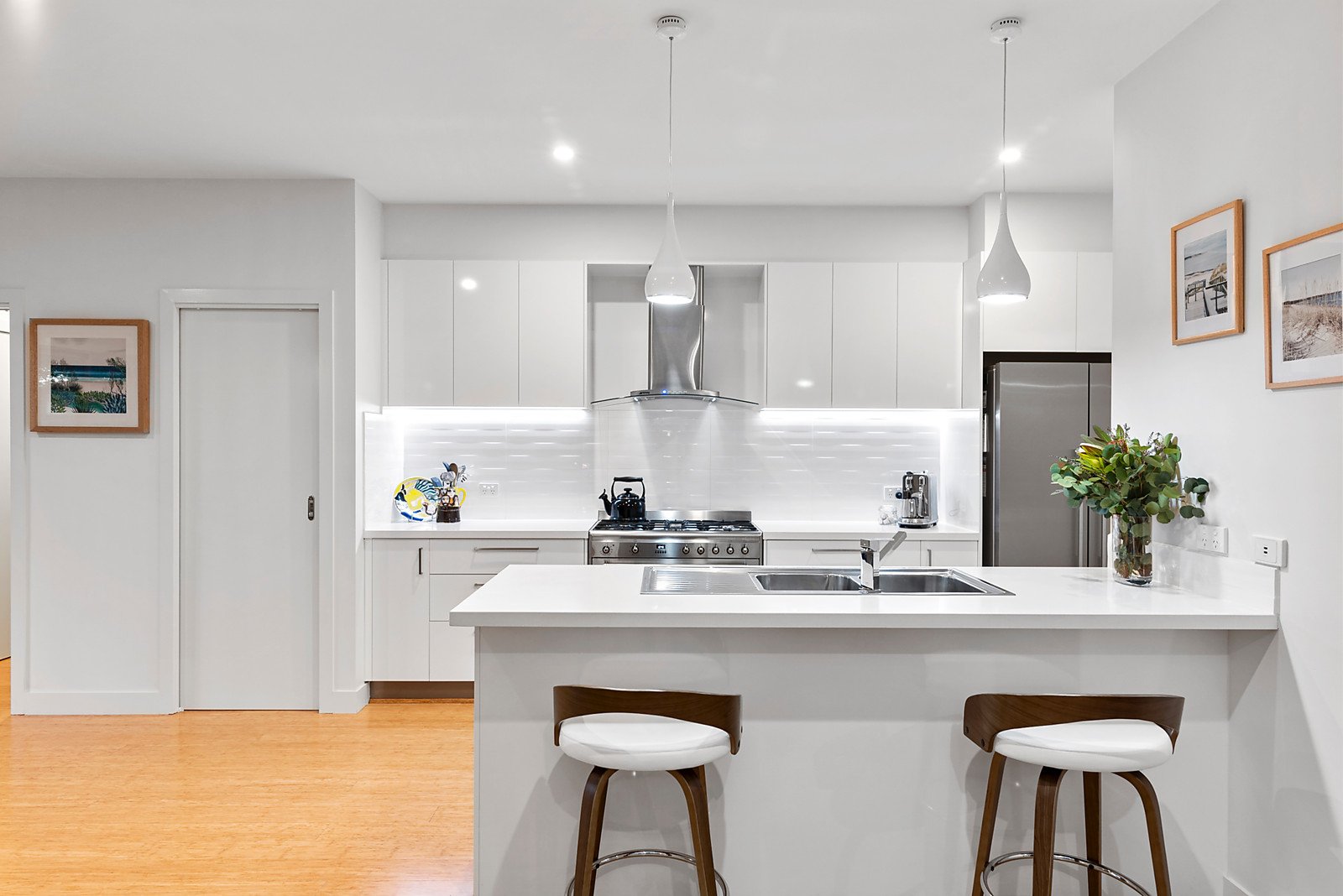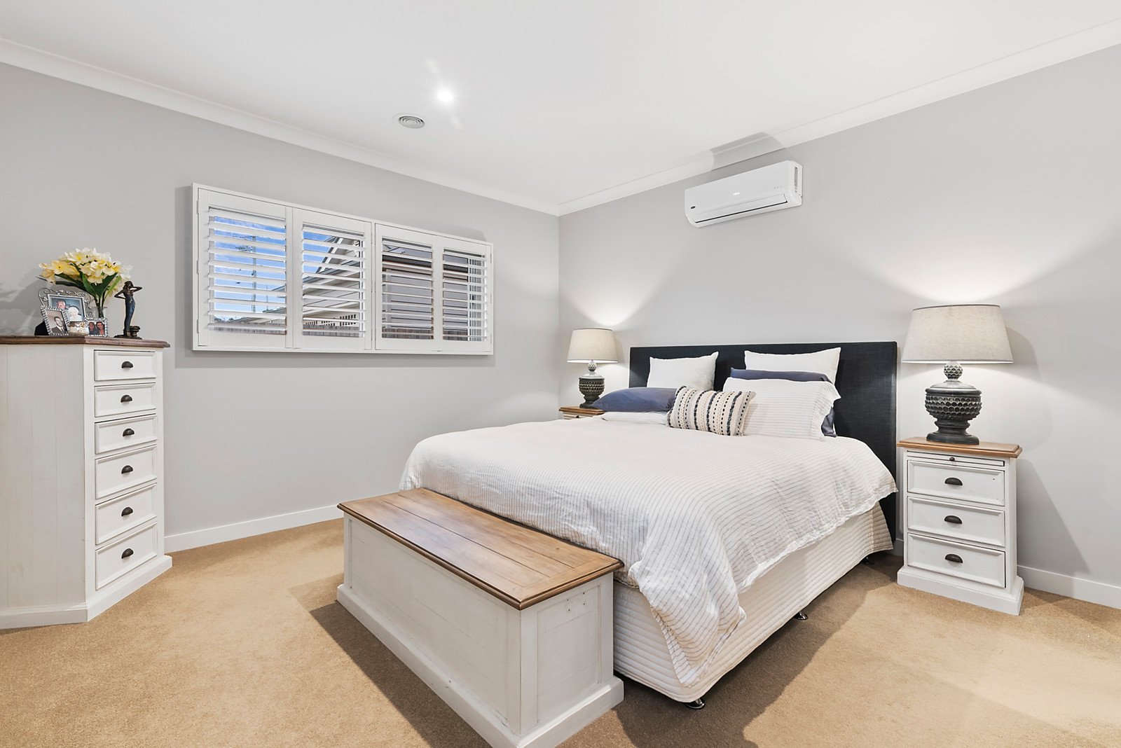 The master is luxuriously appointed with walk-through robe to an oversized twin-vanity ensuite, while two front-oriented sunny bedrooms share a luxe modern family bathroom. Add to this a good laundry with storage and internal access to the garage, 2 x split-system air conditioning and gas ducted heating.