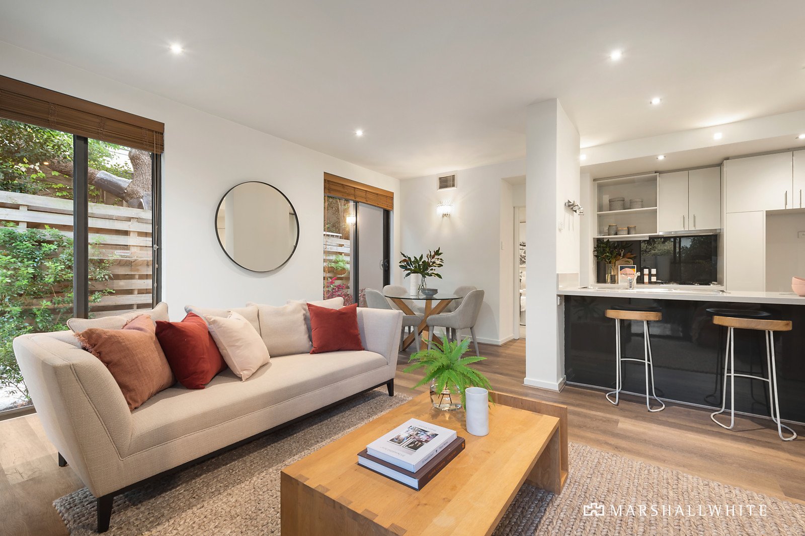 A perfect combination of stylish single-level living with its own large, leafy garden complement the privacy, serenity and quiet security delivered in this stunning, rear ground-floor apartment. The home has been impeccably maintained and presents in immaculate condition; featuring a crisp white decor with wide oak flooring flowing through a generous living and dining area incorporating a sleek kitchen equipped with stone bench-tops, 2-Pac cabinets and premium Smeg appliances. With full-height glass windows and doors opening to the sunny wrap around garden and paved outdoor alfresco area - providing a tranquil oasis for indoor/outdoor dining or entertaining. Also featuring two double bedrooms, main with an ensuite and garden access plus a pristine second bathroom and concealed laundry. Other features of this impressive, luxuriously appointed apartment include video intercom entry from Lisson Grove, ducted heating and cooling, R/C air conditioner (ensuite), storeroom and lift access to remote basement car parking for two cars.