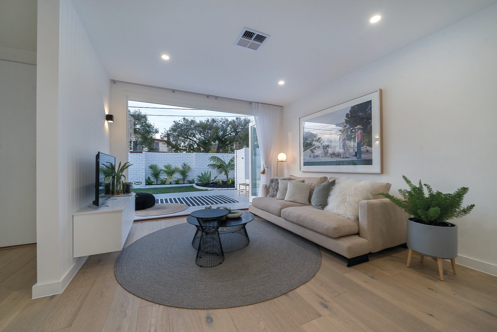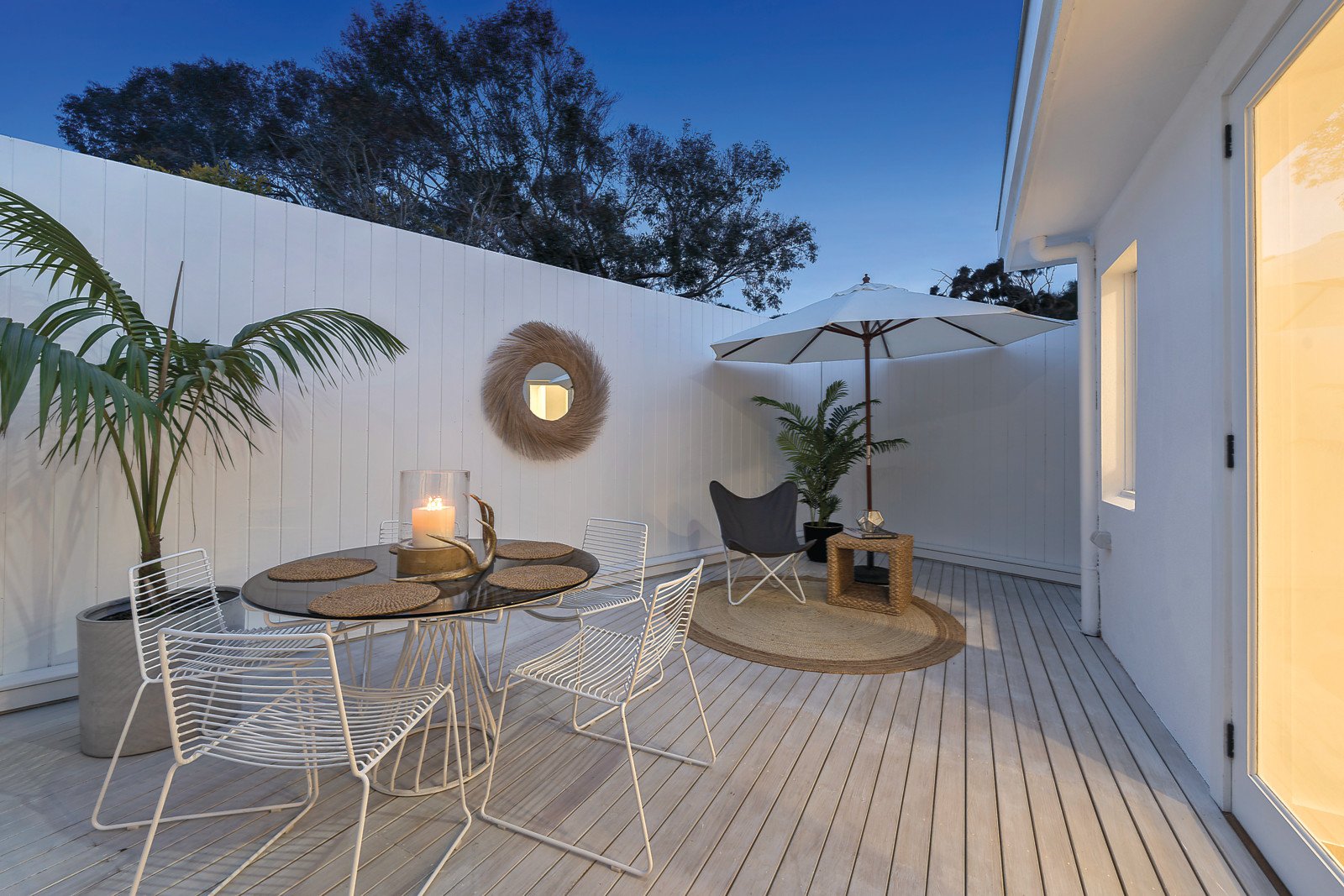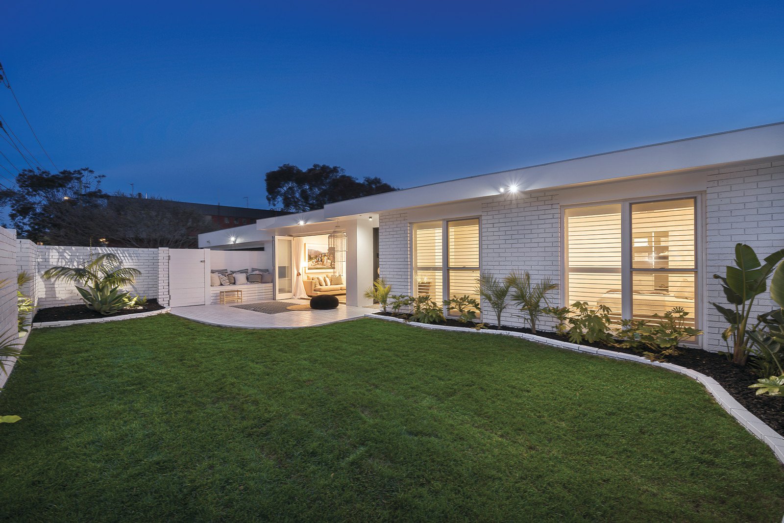 A magnificent renovation brings a relaxed vibe and sun-drenched spaces to a superb address, metres from the beach and Black Rock's shops and cafes. Single-level streetfront townhouse features luxury finishes and fine craftsmanship created by Christine Paterson Interiors and Dixon Dean Spaces. Seamless indoor-outdoor living is north-facing, three bedrooms and two bathrooms offer spaciousness, and the sense of style and light are exceptional. This is the ultimate lifestyle townhouse, featuring a Carrara marble kitchen and butler's pantry with an Ilve induction cooktop, underbench oven and designer lighting. Open-plan living is linked to the garden via bifold doors, and premium features include a stone-topped entertainment unit, timber-panelled feature wall and oak floors. Carrara marble and black tapware add a sumptuous edge to bathrooms, and the main bedroom has the luxury of a well-designed walk-in wardrobe, study nook and light-filled ensuite. Two outdoor living spaces are private and easy-care, designed with a day bed, deck, and original breeze-block bricks. First-class fitout with keyless entry, ducted heating and air conditioning, pure wool carpet, and that quintessential Palm Springs ambience. Three off-street car spaces, a garage with storage area, and everything you need for low-maintenance living in a boutique block of three townhouses.