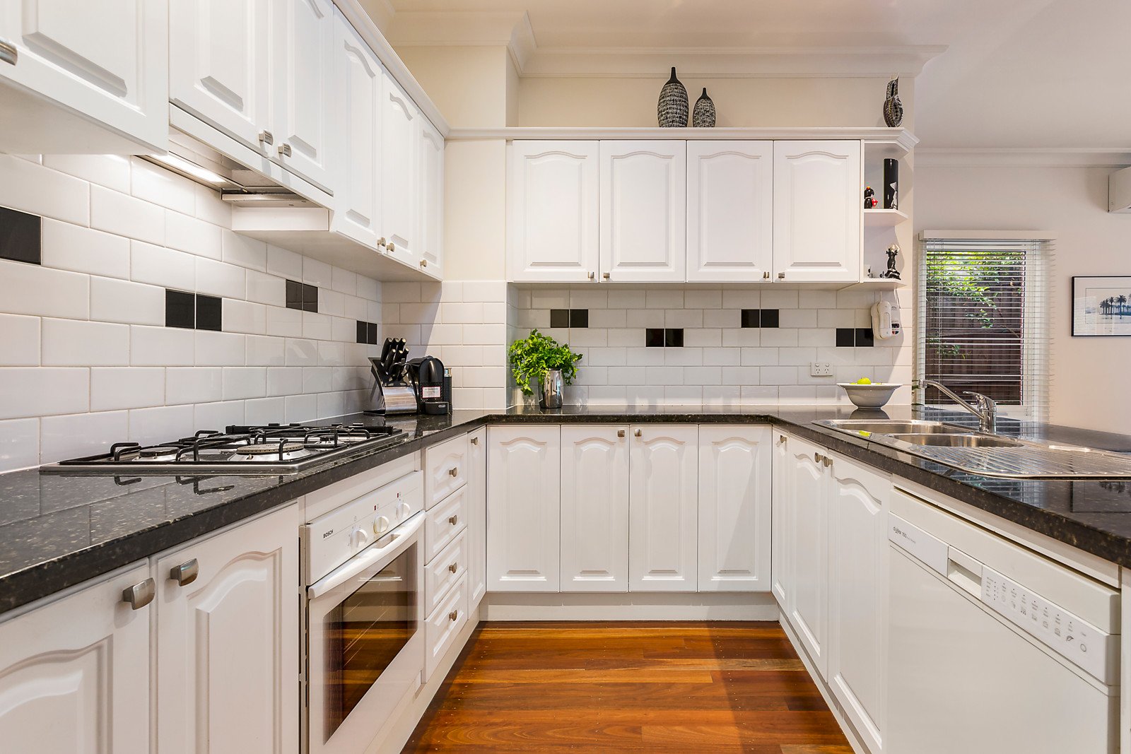 The interior benefits from contemporary design principles and space utilisation; featuring a neutral decor and high gloss polished timber floors with an entrance foyer leading to past a powder room and central courtyard to a formal living room with (OFP) and downstairs main bedroom with WIR & ensuite. Whilst there are a further two good-sized upstairs bedrooms with BIRs, plus a family bathroom with separate WC. A stylish open-plan kitchen equipped with Bosch appliances, granite bench-tops and a separate laundry overlooks an informal living/dining room flowing through French doors to paved alfresco entertaining area and a lush terraced garden - providing a relaxed area for outdoor dining and relaxation.