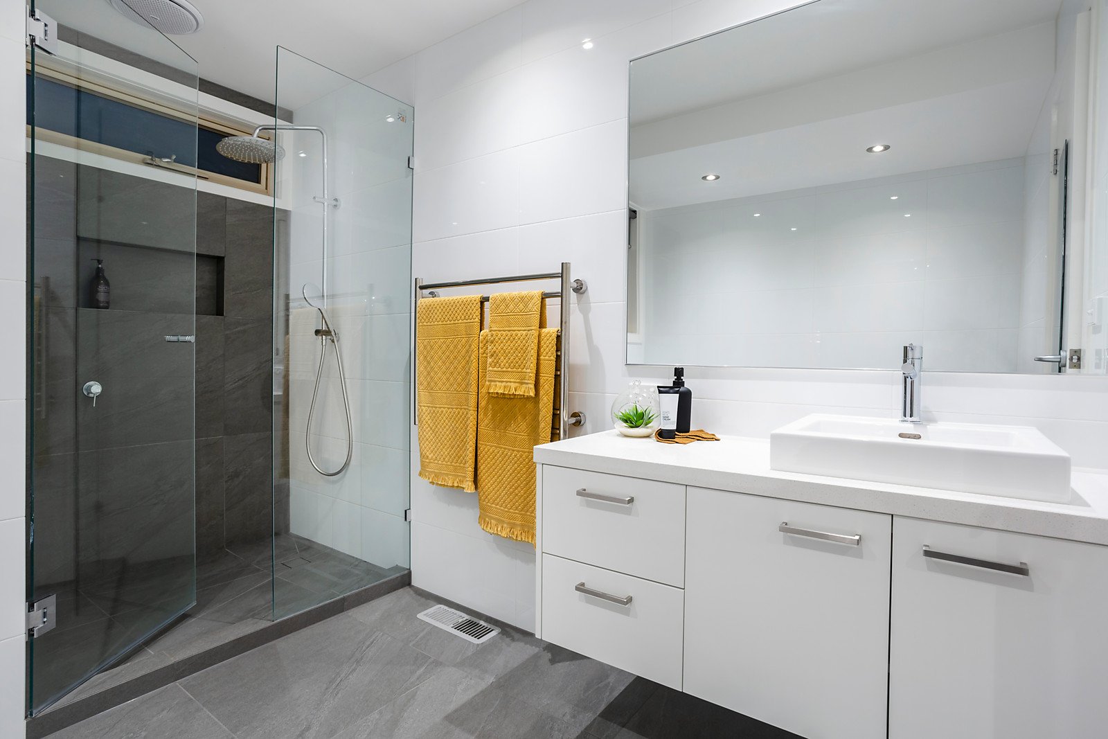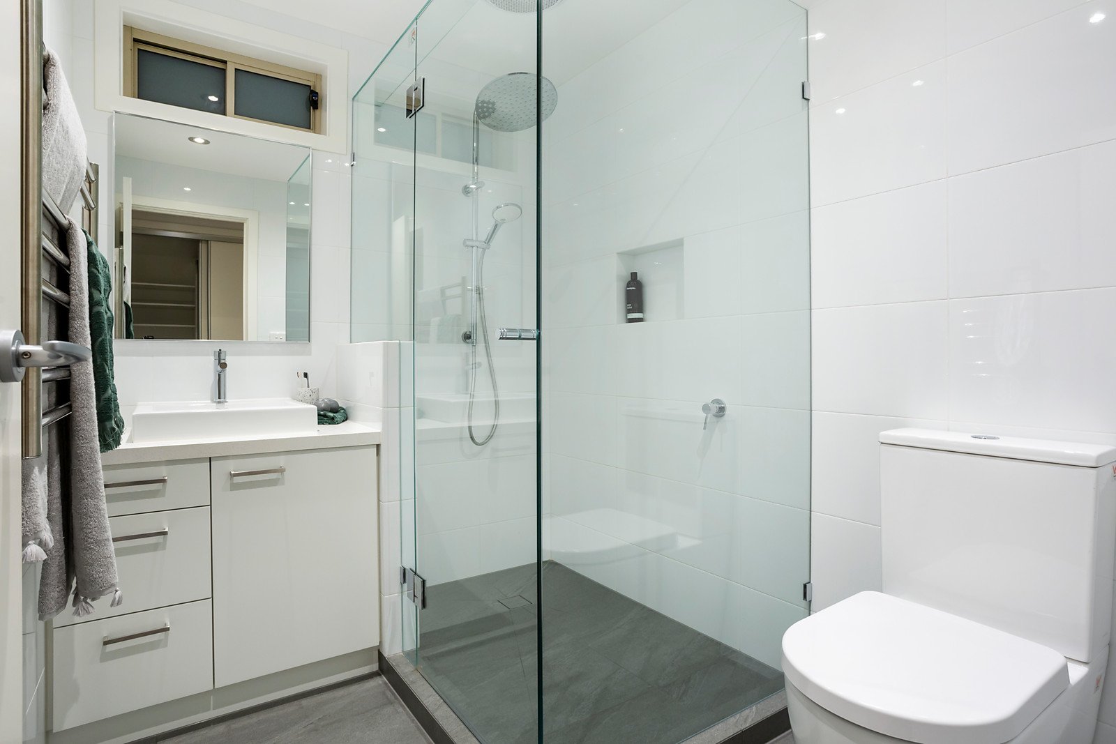 The accommodation lies upstairs, comprising a generous master with private balcony and full-length double built-in robes, complemented by two robed secondary bedrooms, all serviced by a recently renovated, fully-tiled family bathroom with double shower & bathtub and matching ensuite to the main.
