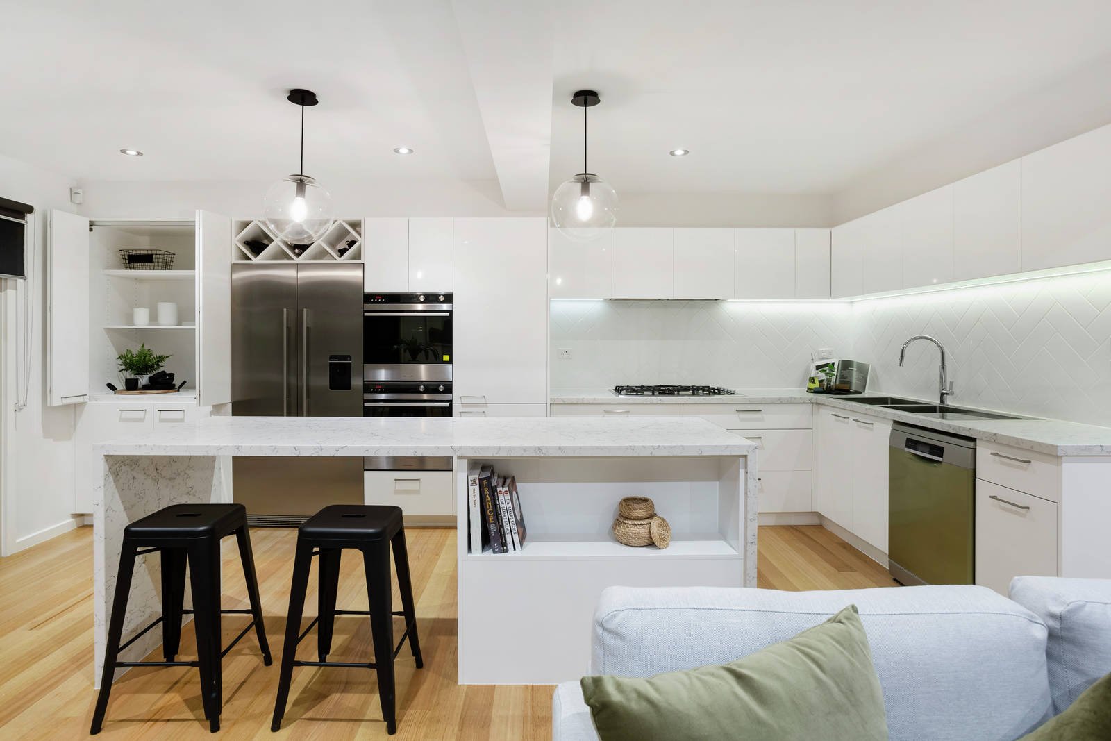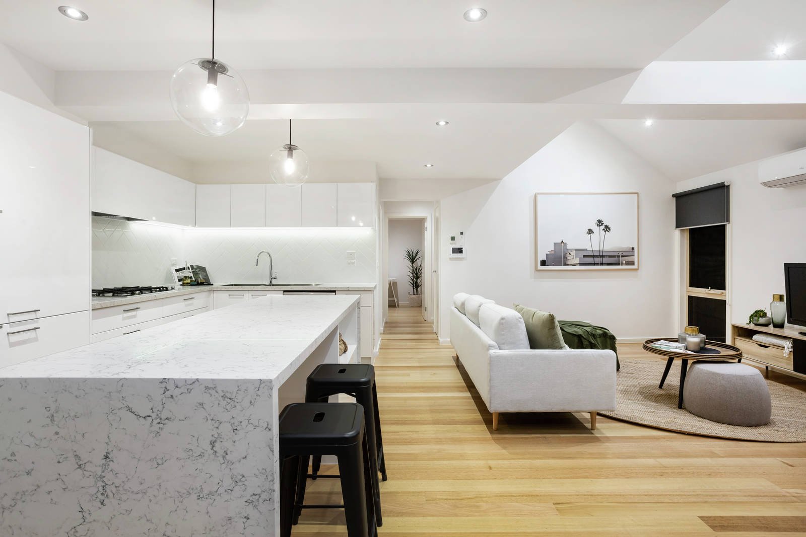 Immaculately presented the home spans 2 impeccable levels with lovely timber floors, 2 sparkling new bathrooms and heaps of storage throughout. On the ground floor a light-drenched living/dining zone enjoys a spacious ambiance under vaulted ceilings with double-glazed stacker doors connecting to the deck and includes a fabulous gourmet-style stone kitchen equipped with Fisher & Paykel double ovens & plumbed fridge, Bosch dishwasher and a waterfall-edge island. A separate formal lounge and large study (or 4th bedroom) provide ample space for relaxation and family harmony.