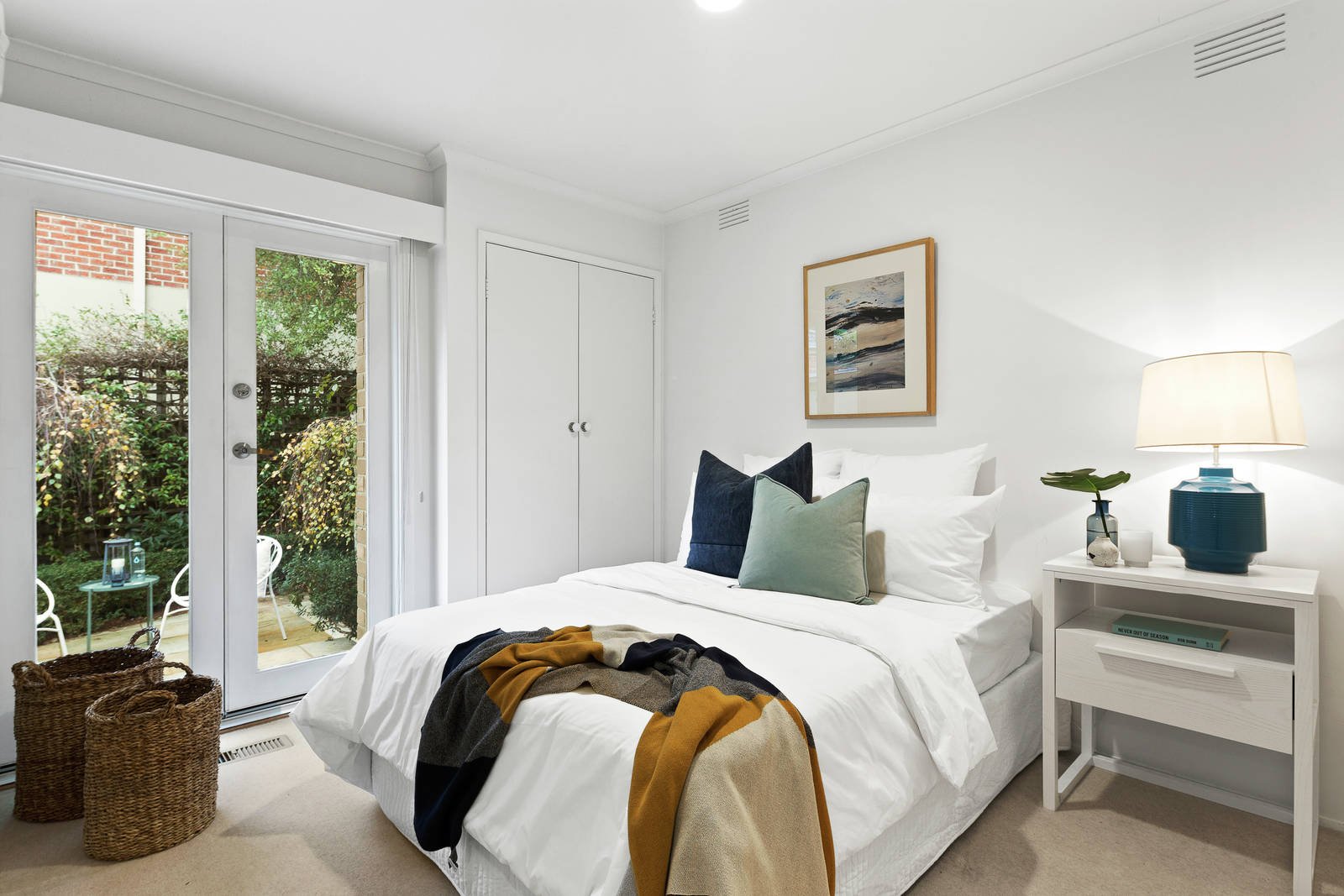 The perfectly presented, well-proportioned and light filled interior boasts polished timber floors through the entrance hall and living and dining areas, which open to the front garden and incorporate a stylish kitchen equipped with quality Fisher & Paykel stainless steel appliances and 2 Pac cabinetry. The home is complemented by three bedrooms (two with BIRs), or two plus a study, one opening to a northern, sandstone paved courtyard lined with box hedges and vine clad walls - a perfect oasis for outdoor entertaining and relaxation in sun-drenched privacy. A pristine sky-lit fully tiled bathroom and separate laundry with courtyard access complete the picture. Other features of this truly delightful home include ducted heating, R/C air conditioner (living area), remote garage and off-street parking.